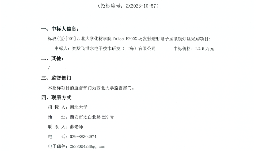 云博app官方在线入口化材学院Talos F200X场发射透射电子显微镜灯丝采购项目成交结果公示 作者: 编辑: 时间:2023-12-05 原公告链接:http://bulletin.sntba.com/resultBulletin/2023-12-05/881283.html