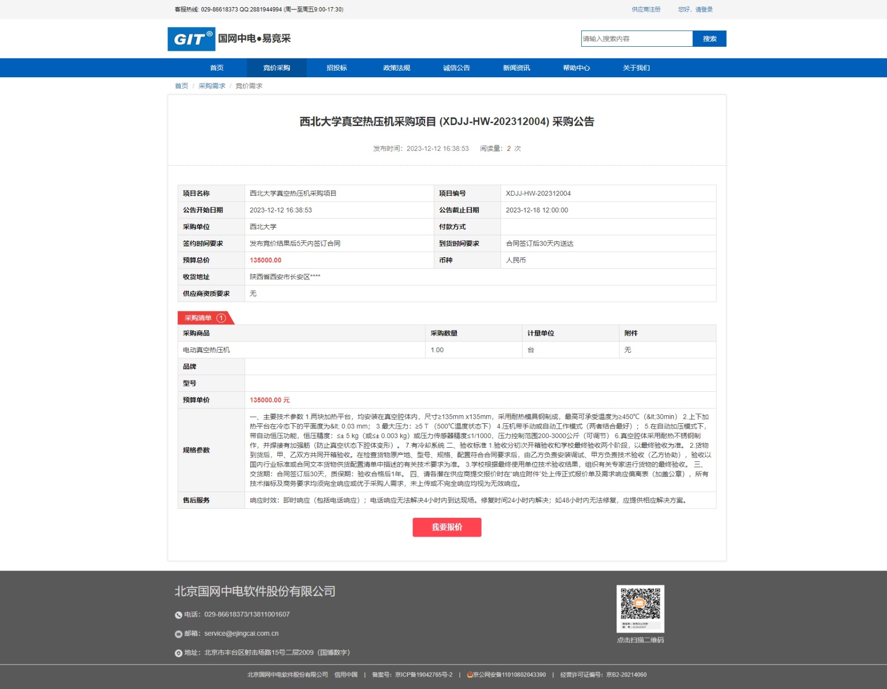 云博app官方在线入口真空热压机采购项目 (XDJJ-HW-202312004) 采购公告 作者: 编辑:采购与招标办公室 时间:2023-12-12 原公告链接:https://www.ejingcai.com.cn/site/bidding/detail/7765