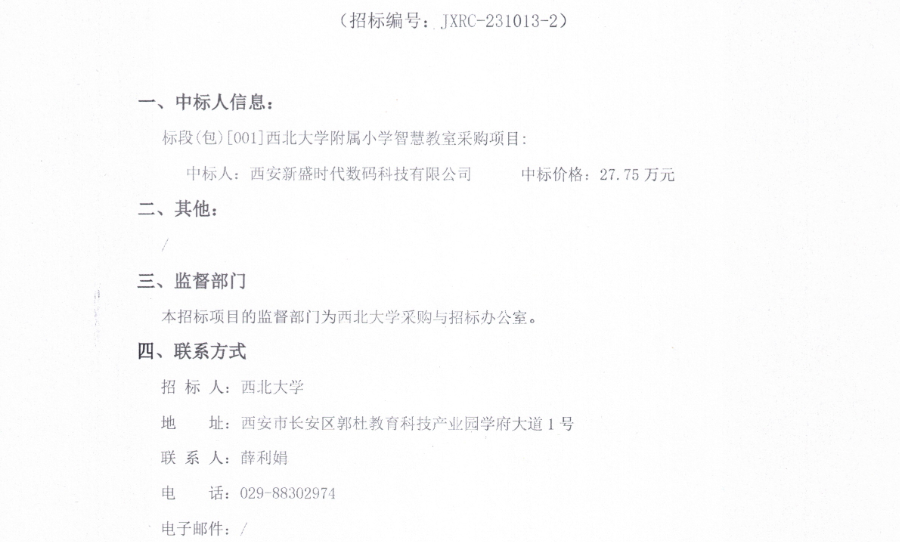 云博app官方在线入口附属小学智慧教室采购项目(二次)中标结果公告 作者: 编辑:采购与招标办公室 时间:2024-03-05 原公告链接:http://bulletin.sntba.com/resultBulletin/2024-03-05/1173145.html