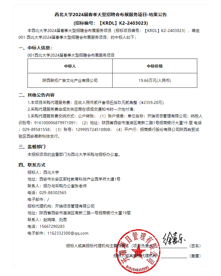 云博app官方在线入口2024届春季大型招聘会布展服务项目结果公告