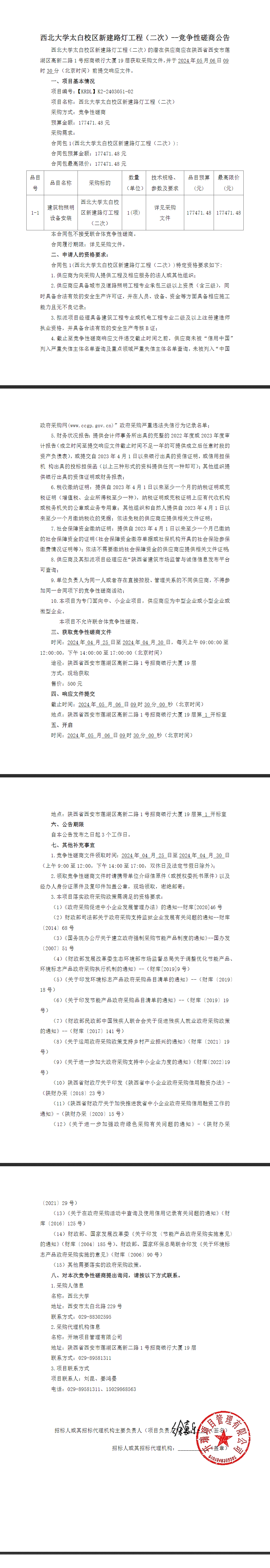 云博app官方在线入口太白校区新建路灯工程(二次)竞争性磋商公告