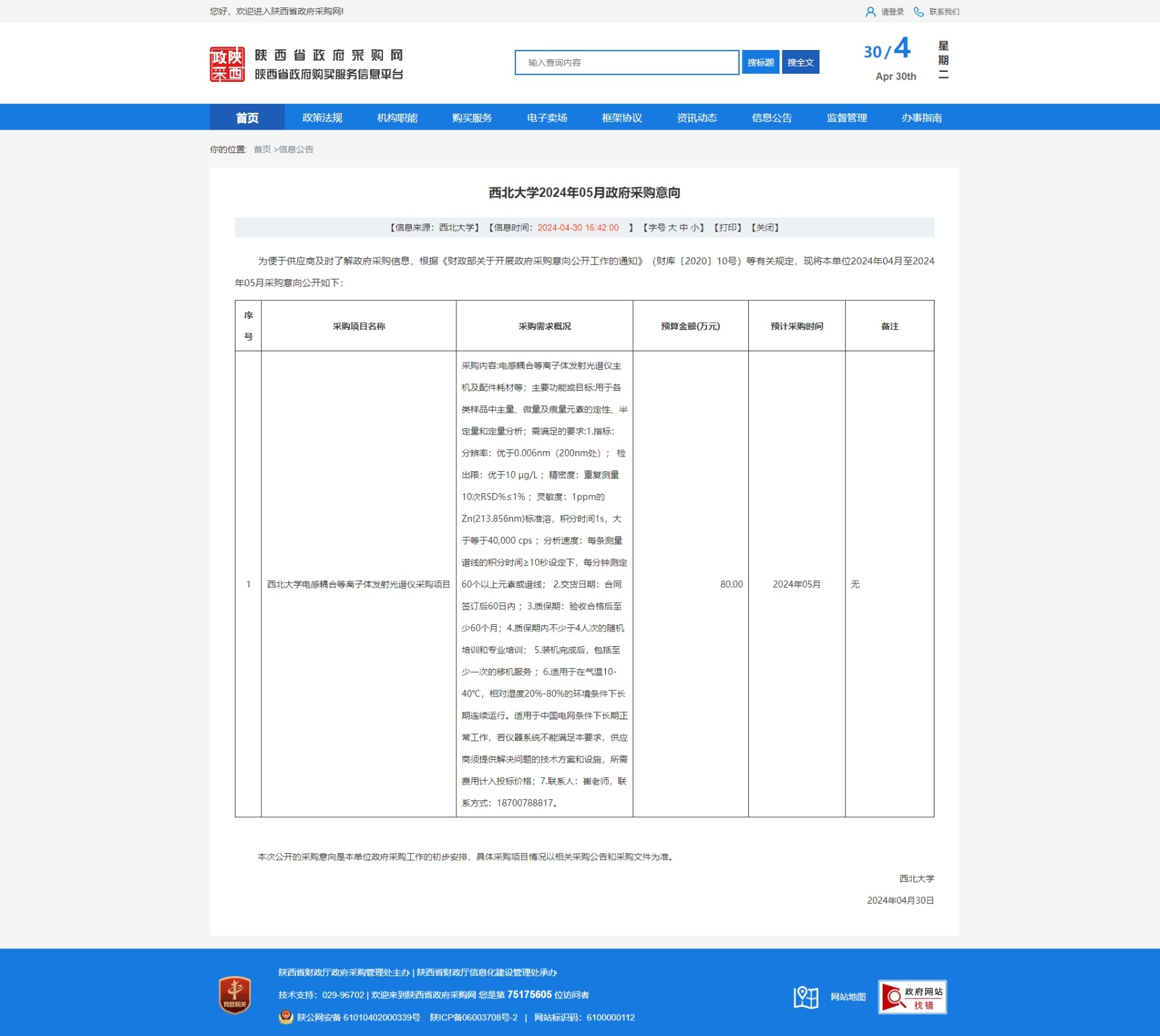云博app官方在线入口2024年05月政府采购意向 作者: 编辑:采购与招标办公室 时间:2024-04-30 原公告链接:https://www.ccgp-shaanxi.gov.cn/freecms/site/shaanxi/ggxx/info/2024/8a69c2f18f23d42a018f2e26ba787387.html?noticeType=59¬iceId=c2550b64-06ce-11ef-b8b6-08c0eb20c666