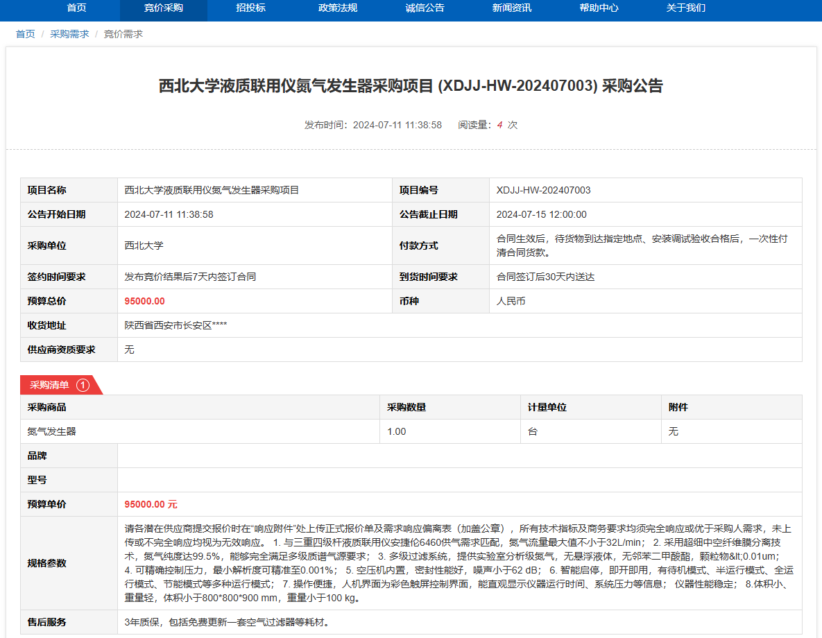 云博app官方在线入口液质联用仪氮气发生器采购项目 (XDJJ-HW-202407003) 竞价采购公告 作者: 编辑: 时间:2024-07-11 原公告链接:https://www.ejingcai.com.cn/site/bidding/detail/11611