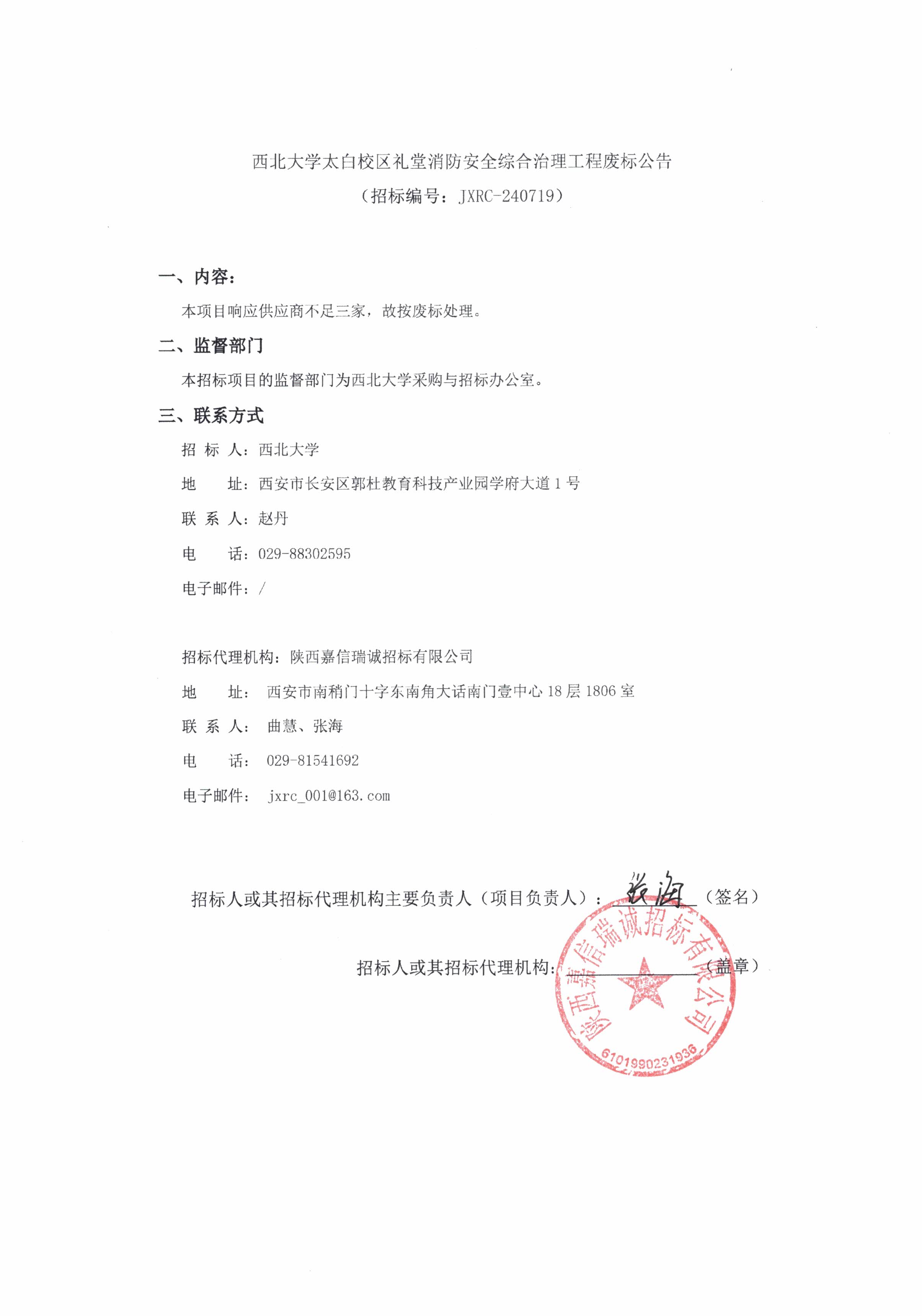云博app官方在线入口太白校区礼堂消防安全综合治理工程废标公告