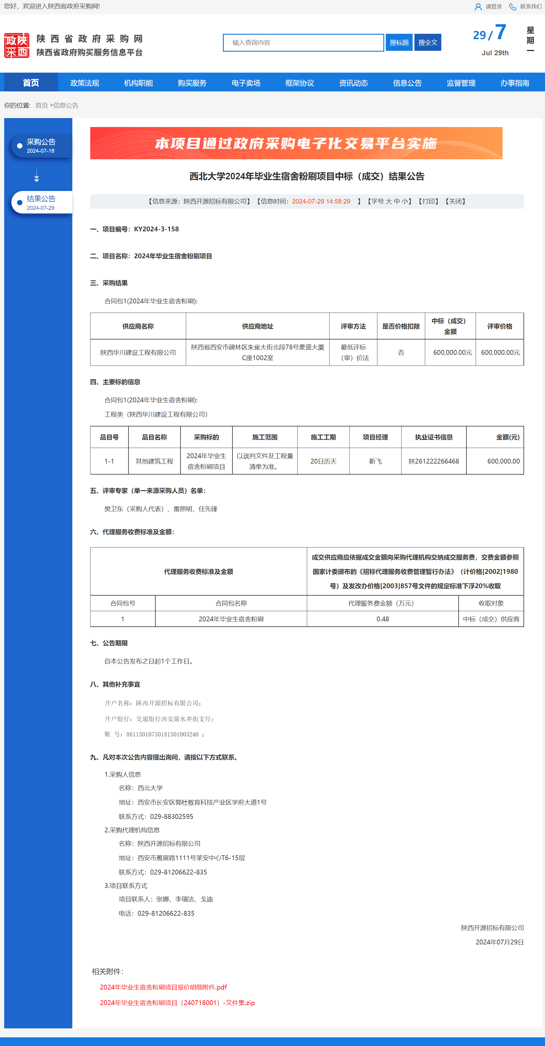 云博app官方在线入口2024年毕业生宿舍粉刷项目中标(成交)结果公告