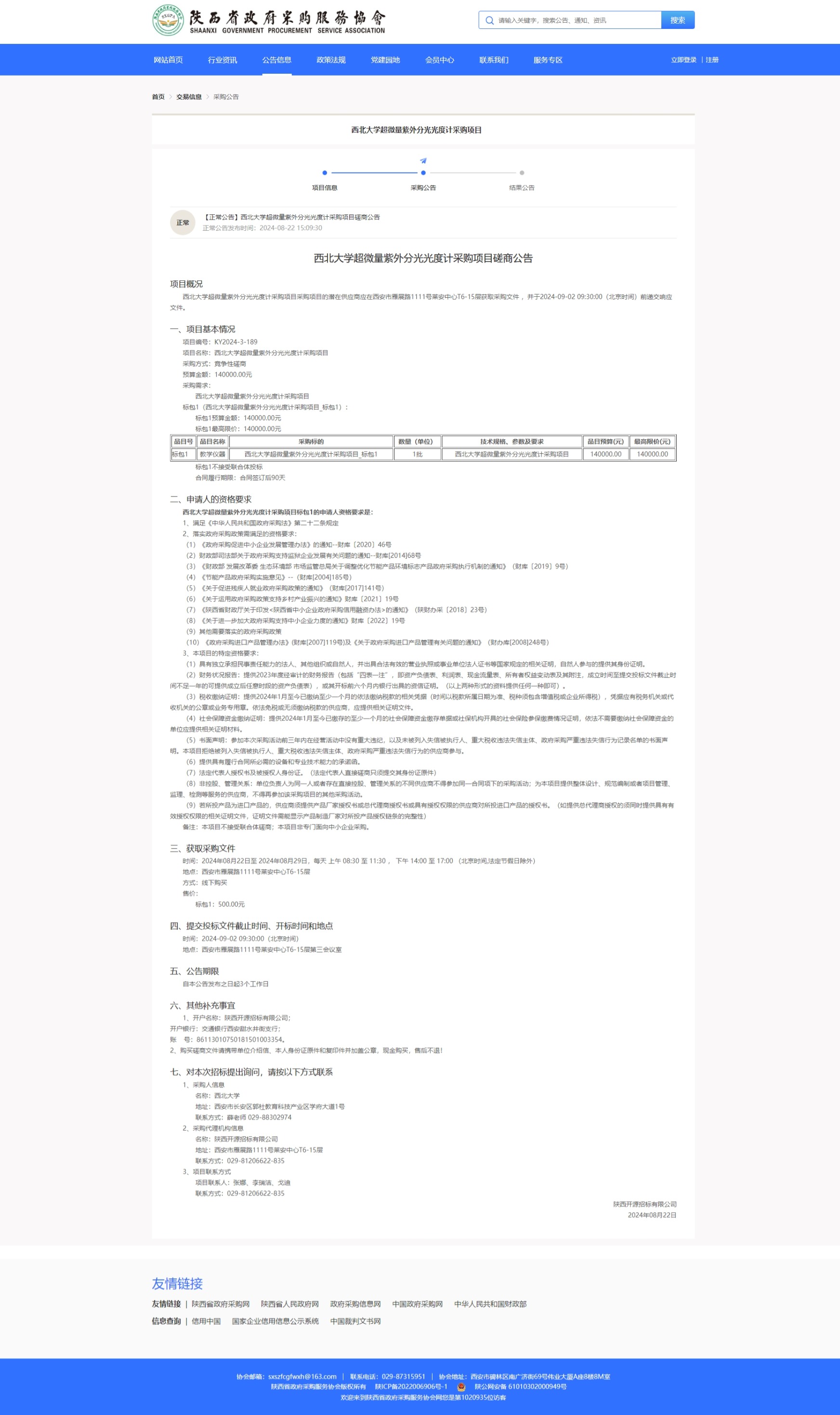 云博app官方在线入口超微量紫外分光光度计采购项目磋商公告 作者: 编辑:采购与招标办公室 时间:2024-08-23 原公告链接:https://www.sxszfcgfwxh.cn/#/tender-vTradeAnnouncement-anno?tenderProjectId=1826435442958446594&rootId=1549250743389216770