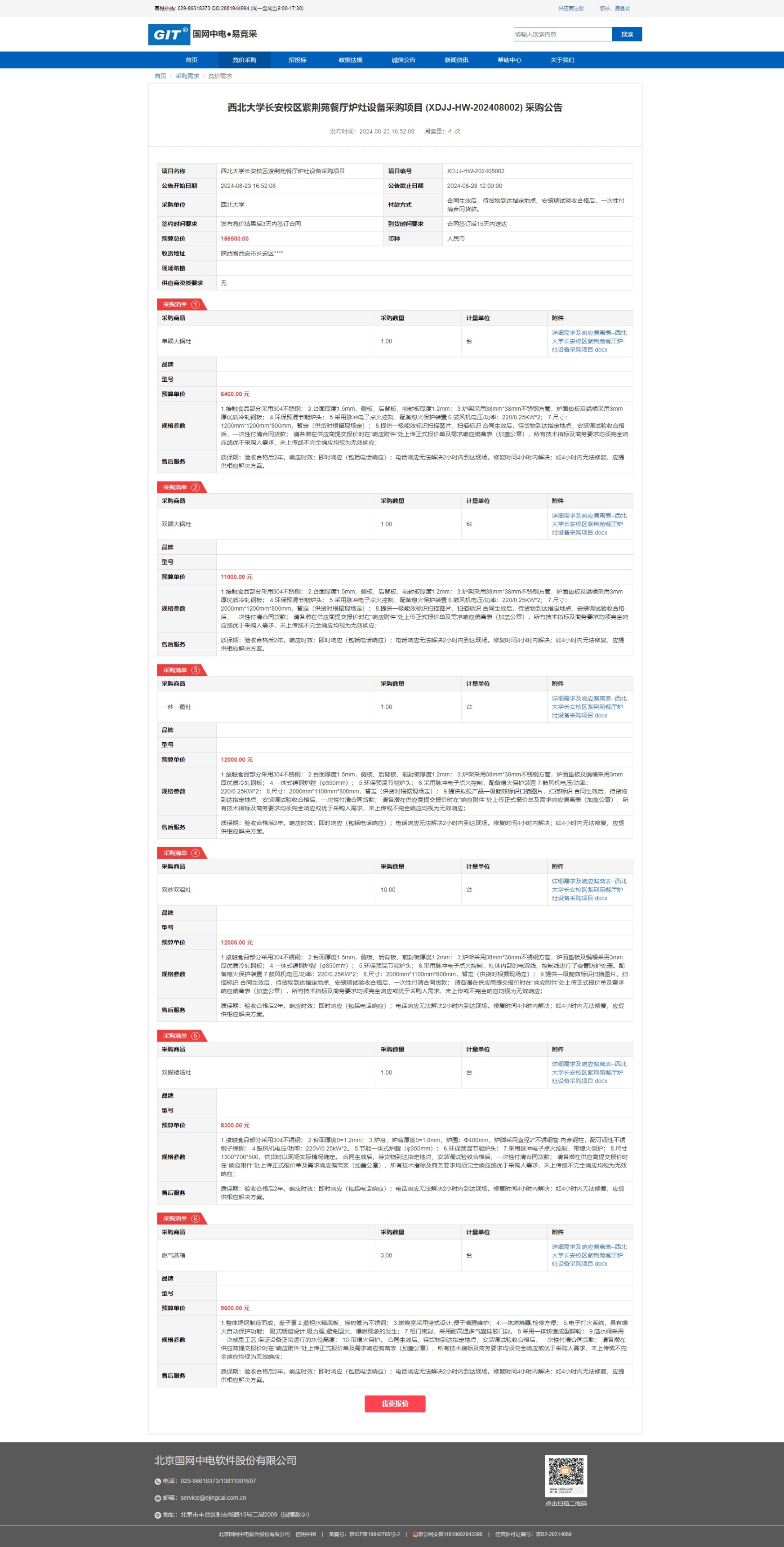 云博app官方在线入口长安校区紫荆苑餐厅炉灶设备采购项目 (XDJJ-HW-202408002) 竞价公告 作者: 编辑:薛利娟 时间:2024-08-23 原公告链接:https://www.ejingcai.com.cn/site/bidding/detail/12188