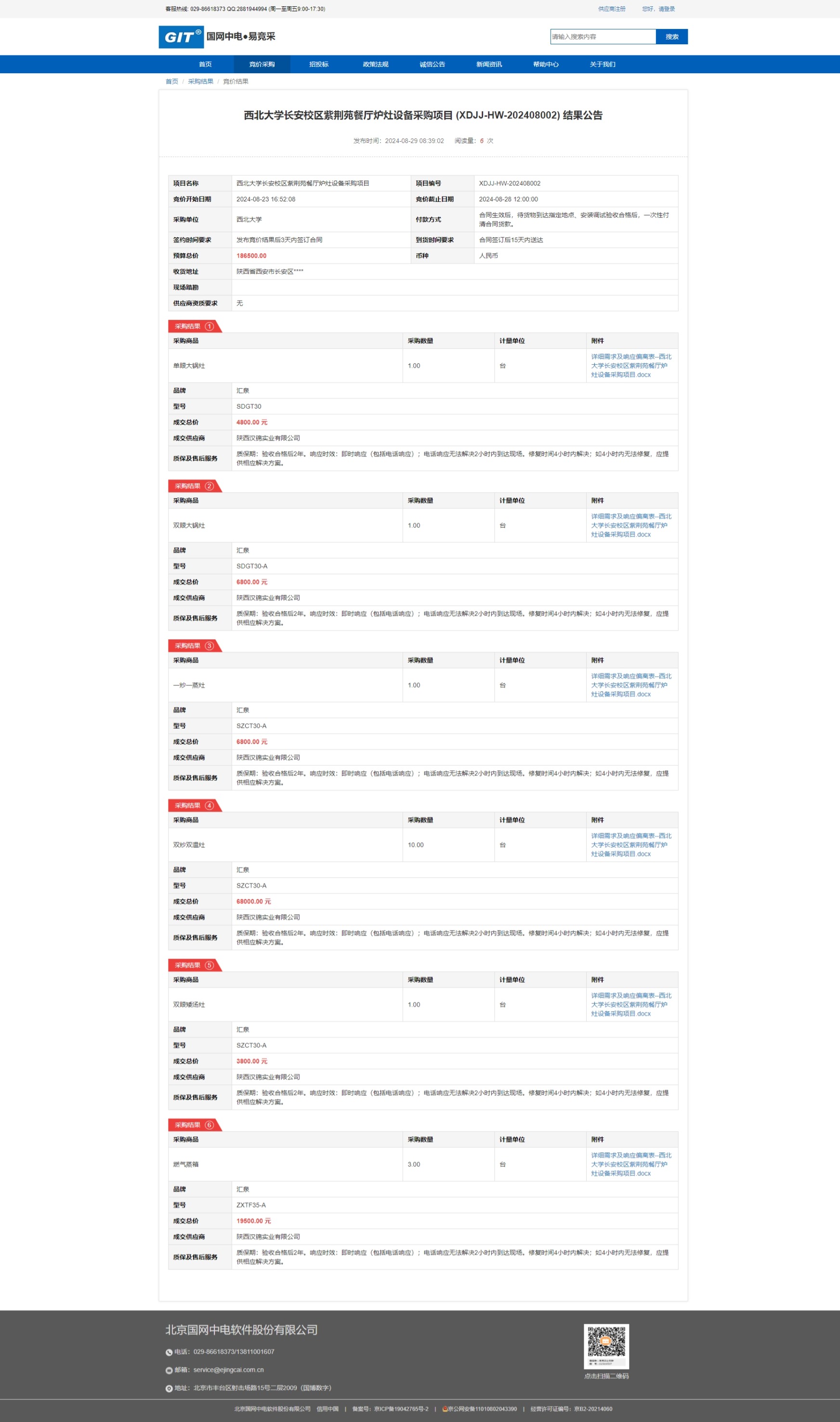 云博app官方在线入口长安校区紫荆苑餐厅炉灶设备采购项目 (XDJJ-HW-202408002) 竞价结果公告 作者: 编辑:采购与招标办公室 时间:2024-08-29 原公告链接:https://www.ejingcai.com.cn/site/bidding/detail/12244