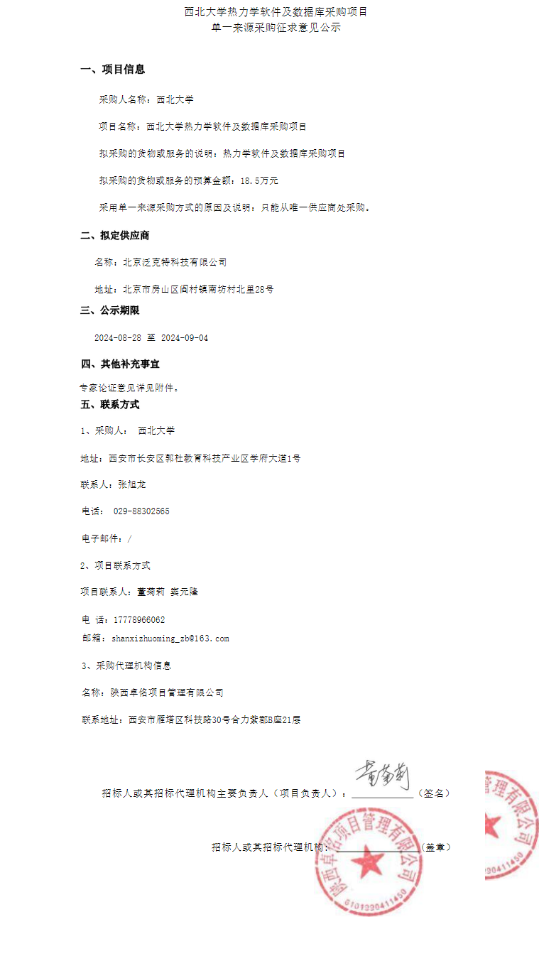 云博app官方在线入口热力学软件及数据库采购项目单一来源采购征求意见公示