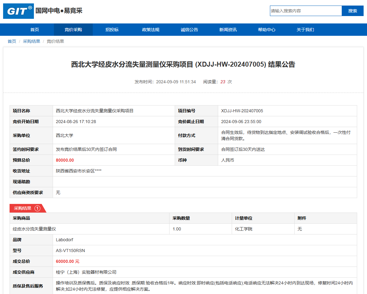 云博app官方在线入口经皮水分流失量测量仪采购项目 (XDJJ-HW-202407005) 竞价结果公告 作者: 编辑: 时间:2024-09-09 原公告链接:https://www.ejingcai.com.cn/site/bidding/detail/12405