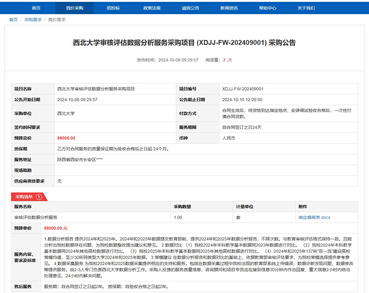 云博app官方在线入口审核评估数据分析服务采购项目(XDJJ-FW-202409001)竞价采购公告 作者: 编辑: 时间:2024-10-08 原公告链接:https://www.ejingcai.com.cn/site/bidding/detail/13071
