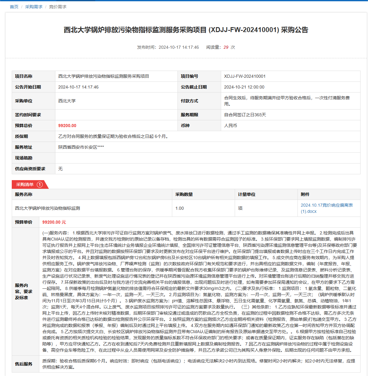 云博app官方在线入口锅炉排放污染物指标监测服务采购项目(XDJJ-FW-202410001)竞价采购公告 作者:采购与招标办公室 编辑: 时间:2024-10-18 原公告链接:https://www.ejingcai.com.cn/site/bidding/detail/13425