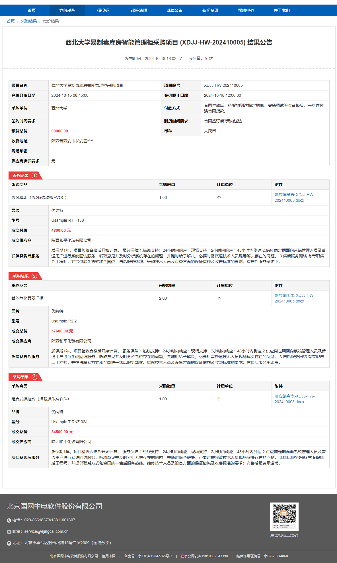 云博app官方在线入口易制毒库房智能管理柜采购项目(XDJJ-HW-202410005)竞价结果公告 作者:采购与招标办公室 编辑: 时间:2024-10-18 原公告链接:https://www.ejingcai.com.cn/site/bidding/detail/13487