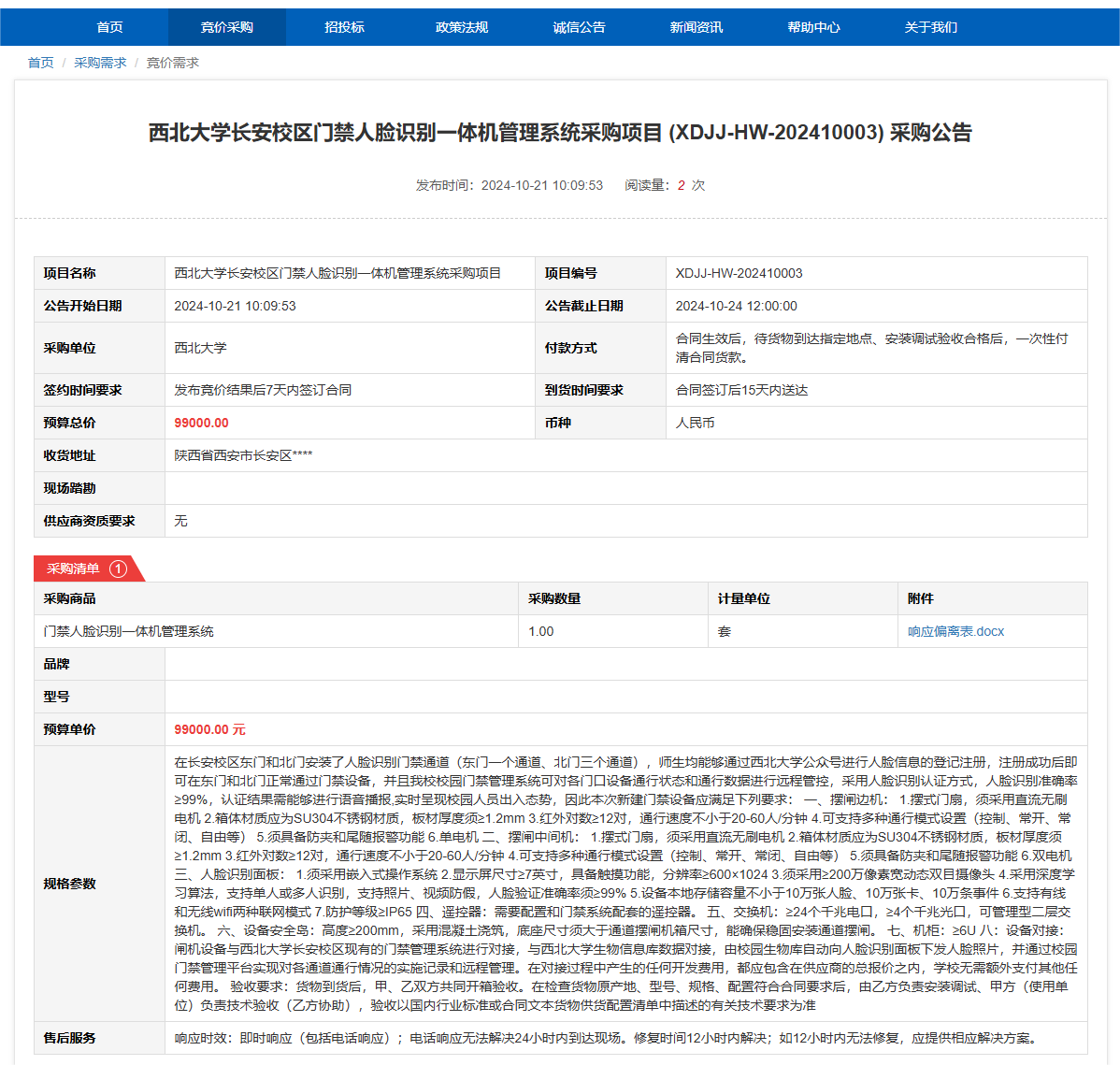 云博app官方在线入口长安校区门禁人脸识别一体机管理系统采购项目(XDJJ-HW-202410003)竞价采购公告 作者:采购与招标办公室 编辑: 时间:2024-10-21 原公告链接:https://www.ejingcai.com.cn/site/bidding/detail/13531