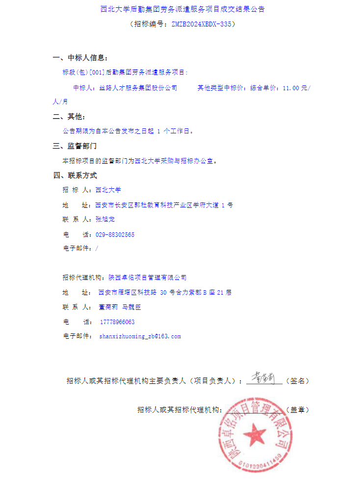 云博app官方在线入口后勤集团劳务派遣服务项目成交结果公告