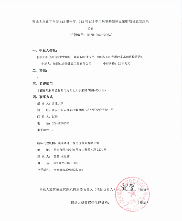 云博app官方在线入口化工学院618报告厅、212和605专用教室基础建设采购项目成交结果公告