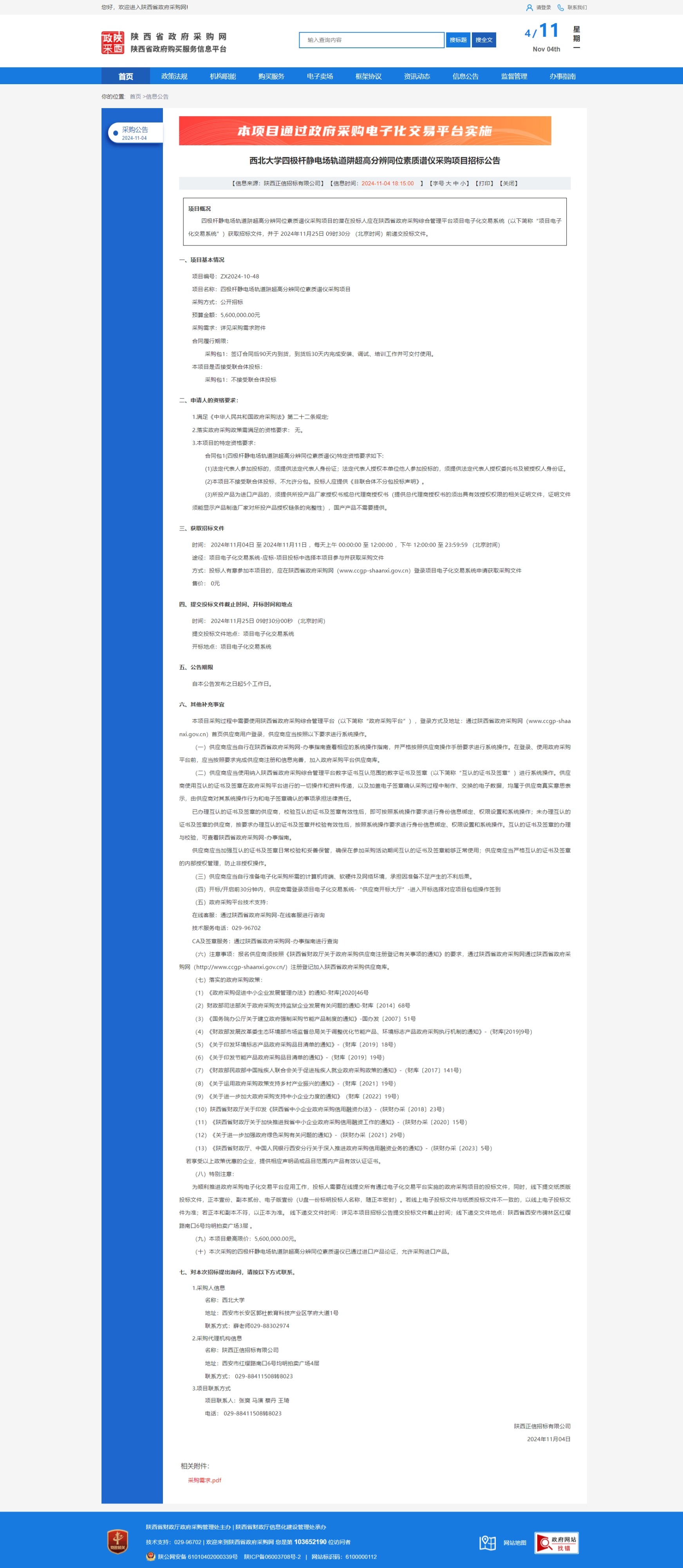 云博app官方在线入口四极杆静电场轨道阱超高分辨同位素质谱仪采购项目招标公告 作者: 编辑:采购与招标办公室 时间:2024-11-04 原公告链接:https://www.ccgp-shaanxi.gov.cn/freecms/site/shaanxi/ggxx/info/2024/8a69c251921857370192f6a2caf239ff.html?noticeType=001011¬iceId=331afdde-9a97-11ef-8063-08c0eb20c666