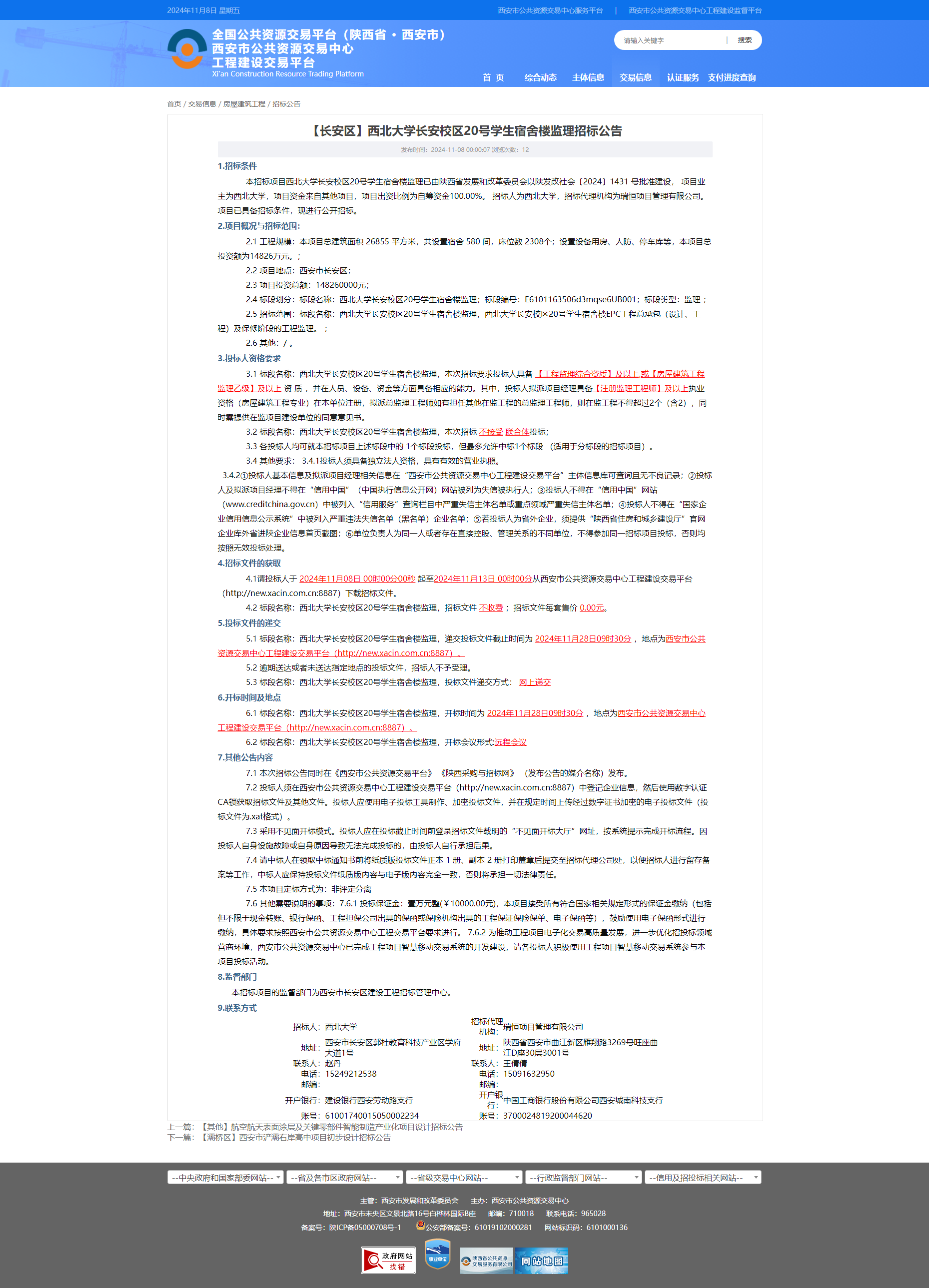 云博app官方在线入口长安校区20号学生宿舍楼监理招标公告