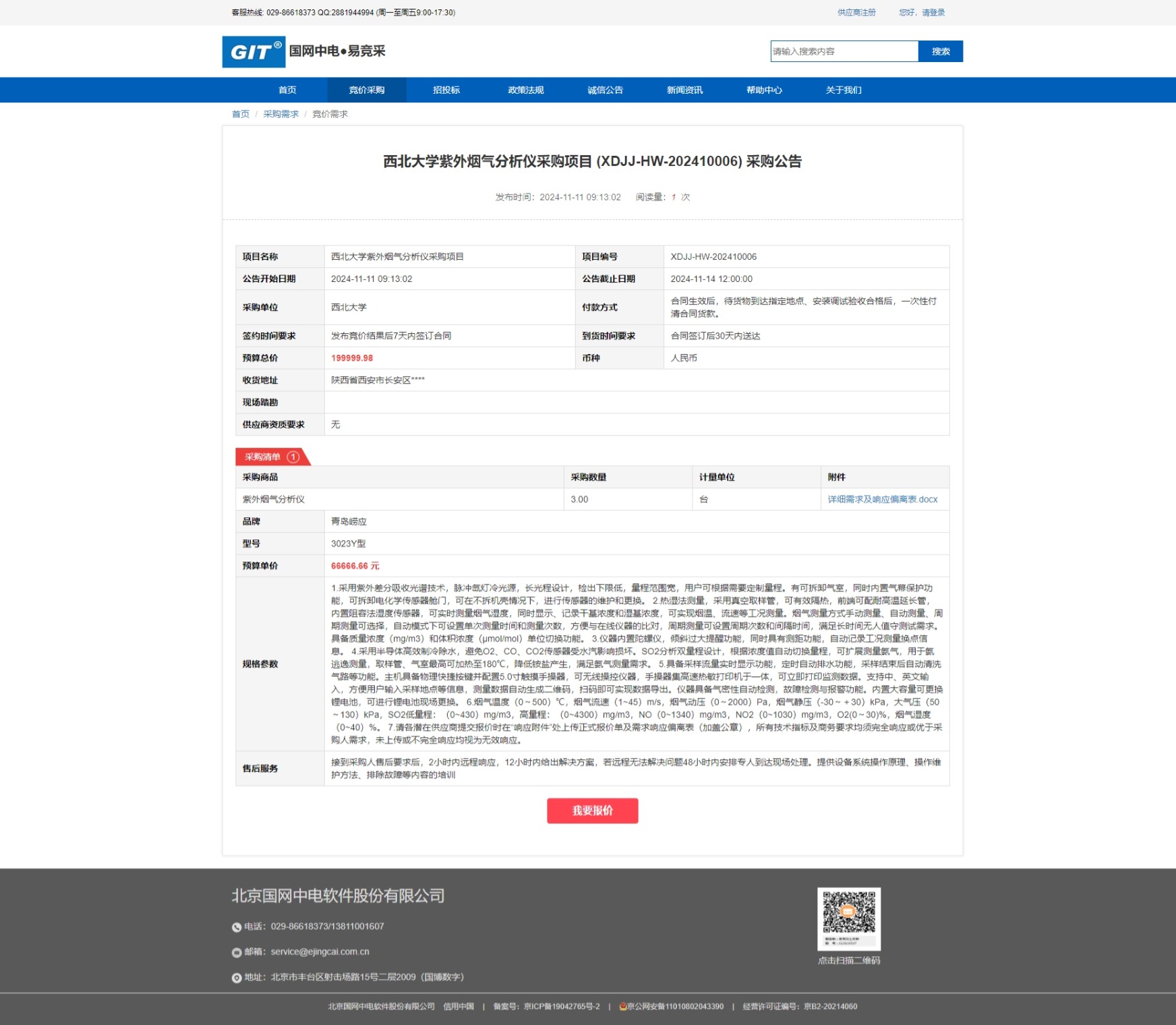 云博app官方在线入口紫外烟气分析仪采购项目 (XDJJ-HW-202410006) 竞价采购公告 作者: 编辑:采购与招标办公室 时间:2024-11-11 原公告链接:https://www.ejingcai.com.cn/site/bidding/detail/14592