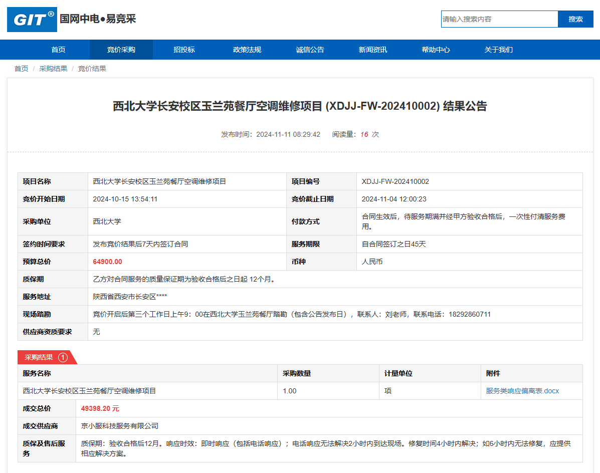云博app官方在线入口长安校区玉兰苑餐厅空调维修项目(XDJJ-FW-202410002)竞价结果公告 作者:采购与招标办公室 编辑: 时间:2024-11-11 原公告链接:https://www.ejingcai.com.cn/site/bidding/detail/14578