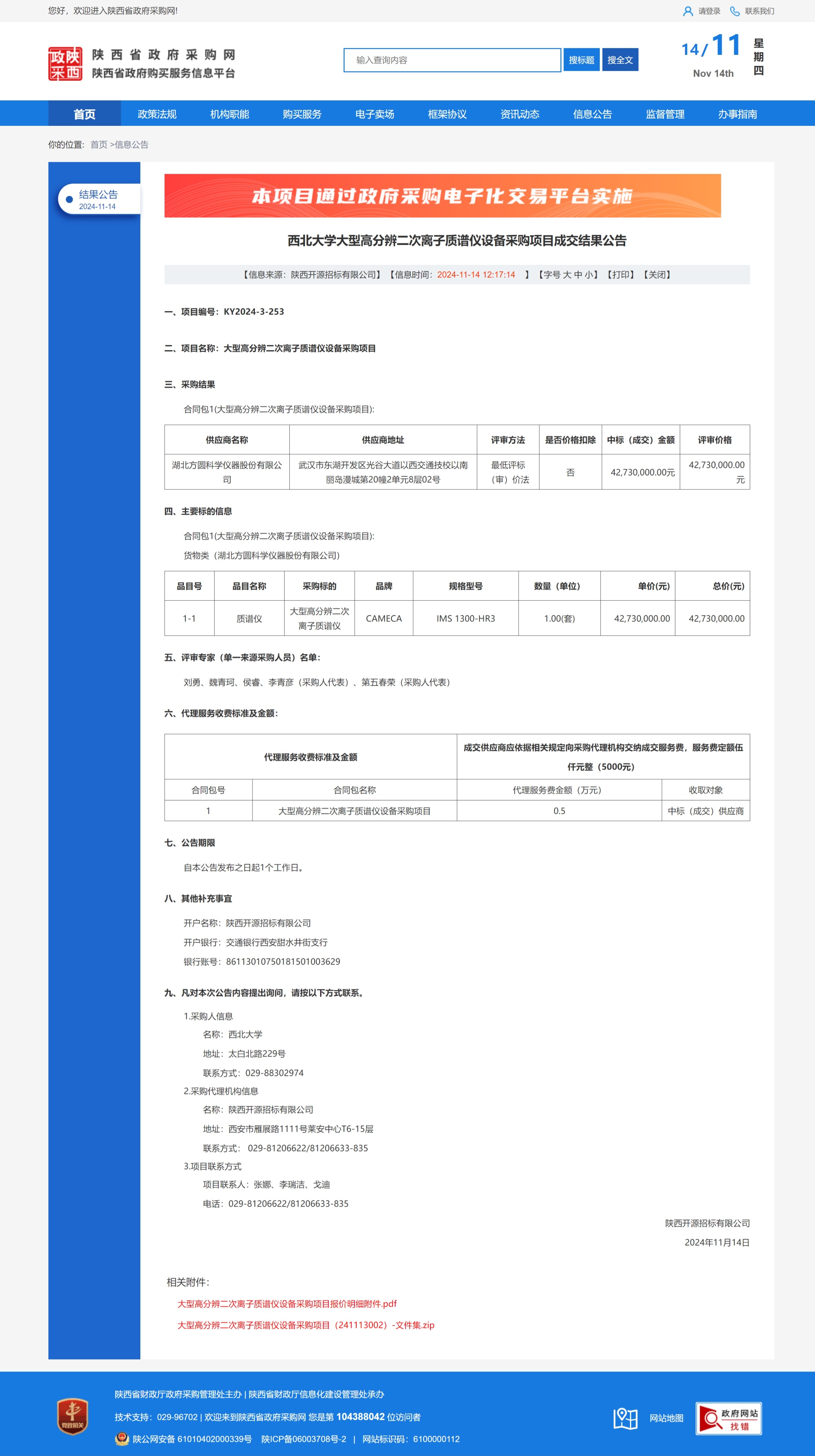 云博app官方在线入口大型高分辨二次离子质谱仪设备采购项目成交结果公告 作者: 编辑:薛利娟 时间:2024-11-14 原公告链接:https://www.ccgp-shaanxi.gov.cn/freecms/site/shaanxi/ggxx/info/2024/8a69c5a59218576d019328dcd1526537.html?noticeType=001025¬iceId=e4e285ed-a240-11ef-8063-08c0eb20c666