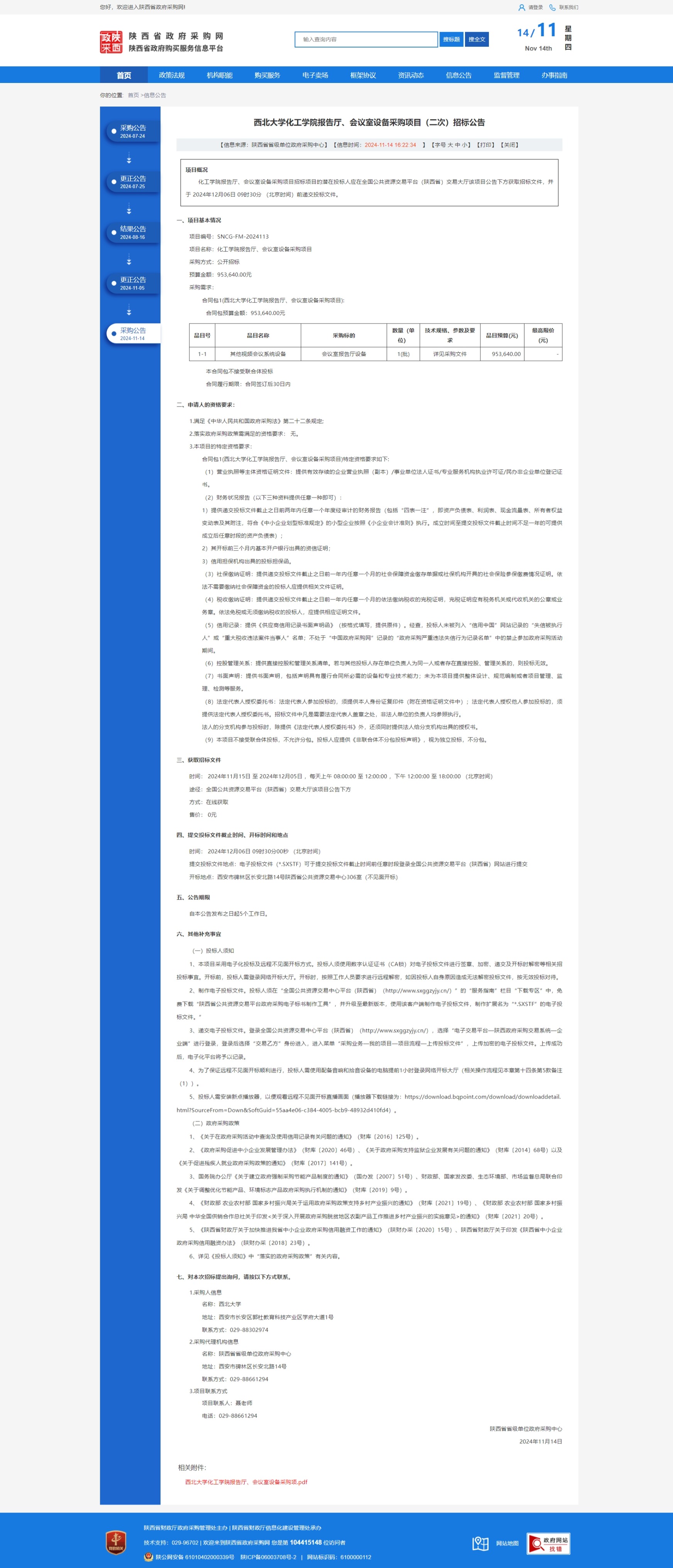 云博app官方在线入口化工学院报告厅、会议室设备采购项目(二次)招标公告 作者: 编辑:薛利娟 时间:2024-11-14 原公告链接:https://www.ccgp-shaanxi.gov.cn/freecms/site/shaanxi/ggxx/info/2024/8a69c44e9218572b0193285a44d64ac8.html?noticeType=001011¬iceId=2affca7b-a263-11ef-8063-08c0eb20c666