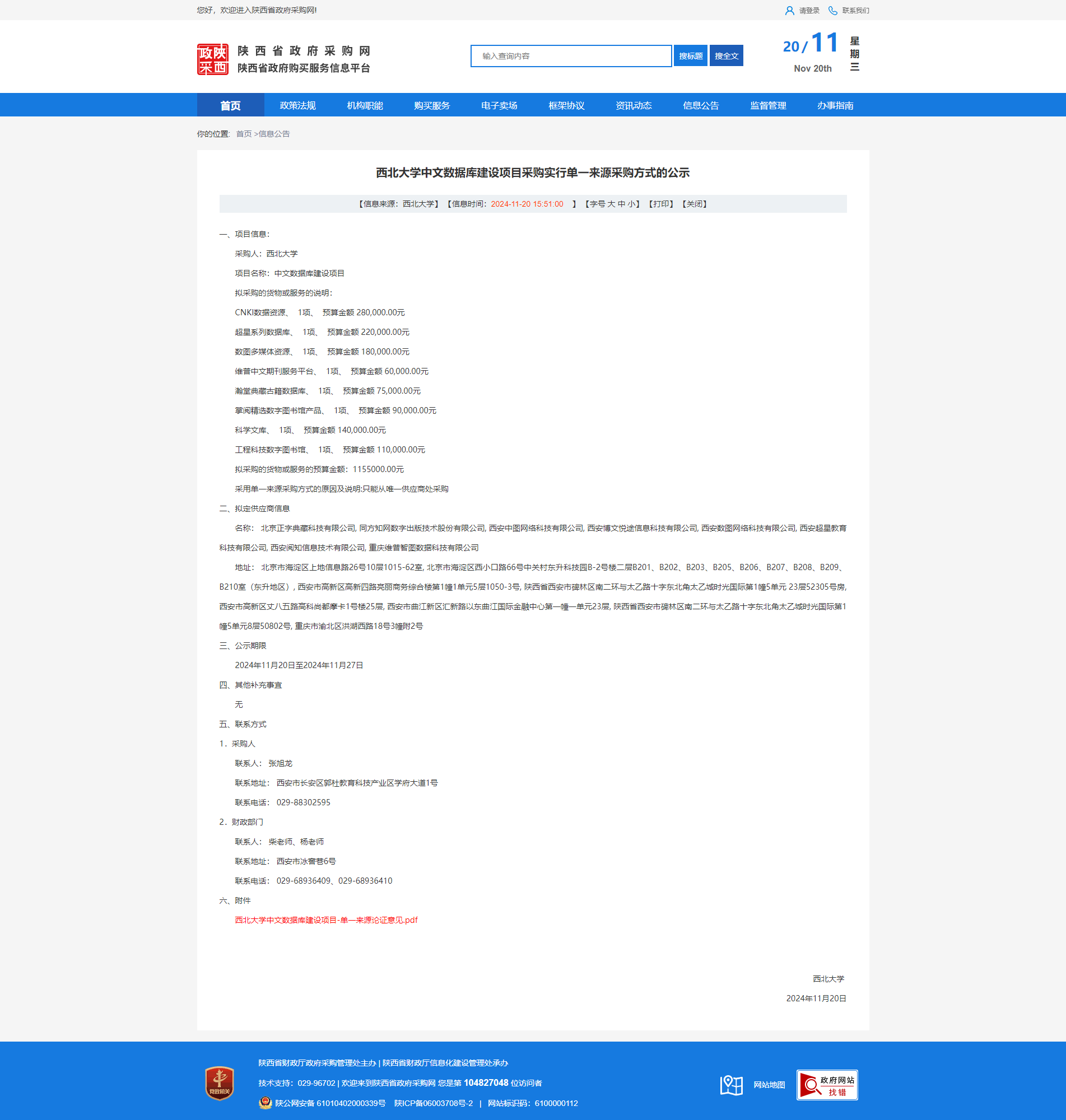 云博app官方在线入口中文数据库建设项目采购实行单一来源采购方式的公示
