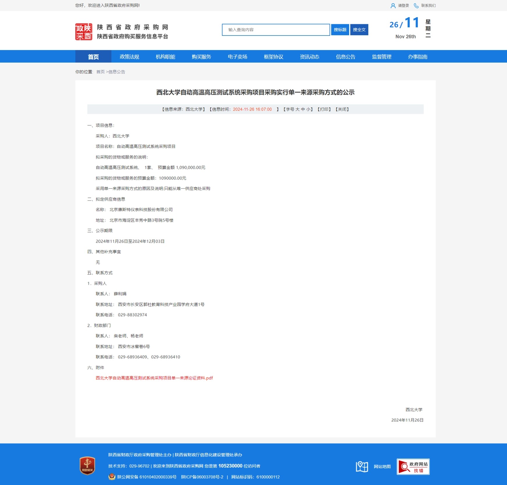 云博app官方在线入口自动高温高压测试系统采购项目采购实行单一来源采购方式的公示 作者: 编辑:薛利娟 时间:2024-11-26 原公告链接:https://www.ccgp-shaanxi.gov.cn/freecms/site/shaanxi/ggxx/info/2024/8a69c037936597080193677af75243c5.html?noticeType=001051¬iceId=008eb2b0-abcf-11ef-8063-08c0eb20c666