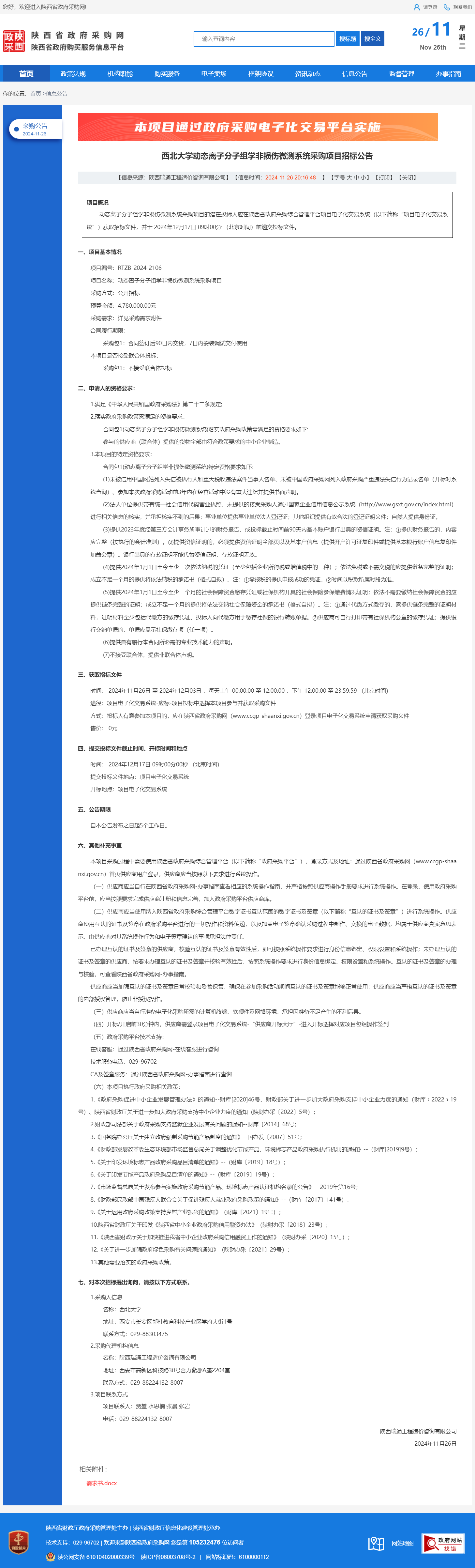 云博app官方在线入口动态离子分子组学非损伤微测系统采购项目招标公告 作者:采购与招标办公室 编辑: 时间:2024-11-26 原公告链接:http://www.ccgp-shaanxi.gov.cn/freecms/site/shaanxi/ggxx/info/2024/8a69c95d921859f00193685d31243738.html?noticeType=001011¬iceId=e6602f79-abf1-11ef-8063-08c0eb20c666
