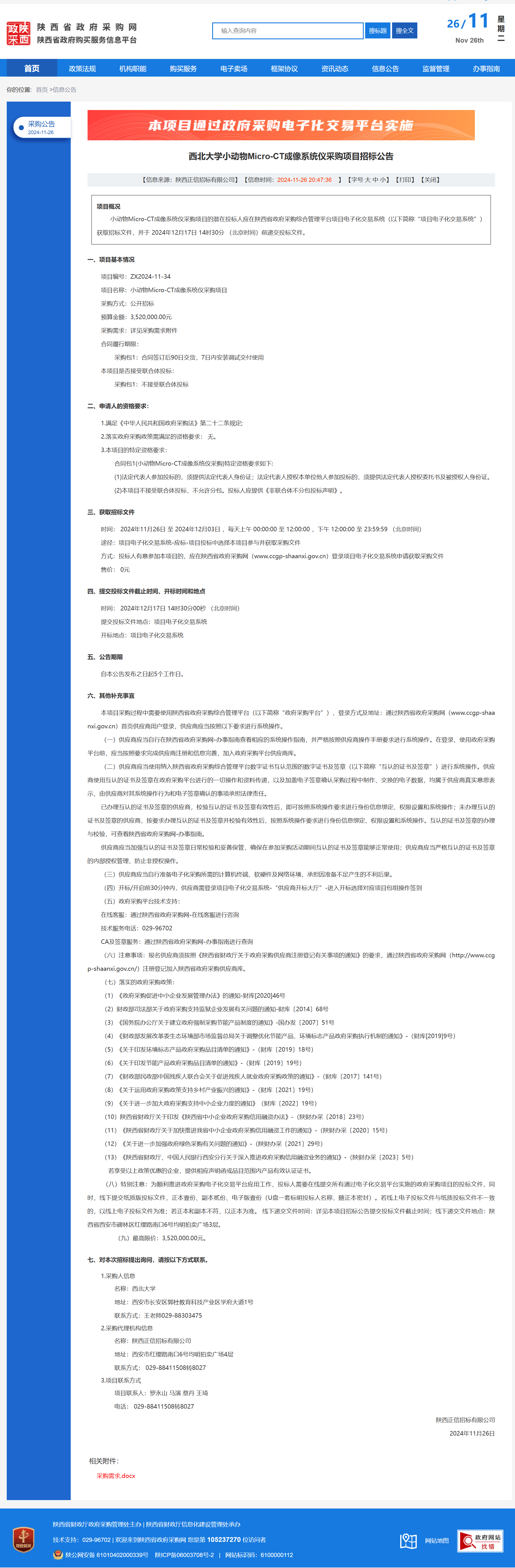 云博app官方在线入口小动物Micro-CT成像系统仪采购项目招标公告 作者:采购与招标办公室 编辑: 时间:2024-11-26 原公告链接:https://www.ccgp-shaanxi.gov.cn/freecms/site/shaanxi/ggxx/info/2024/8a69c251921857370193685963892947.html?noticeType=001011¬iceId=3436110f-abf6-11ef-8063-08c0eb20c666