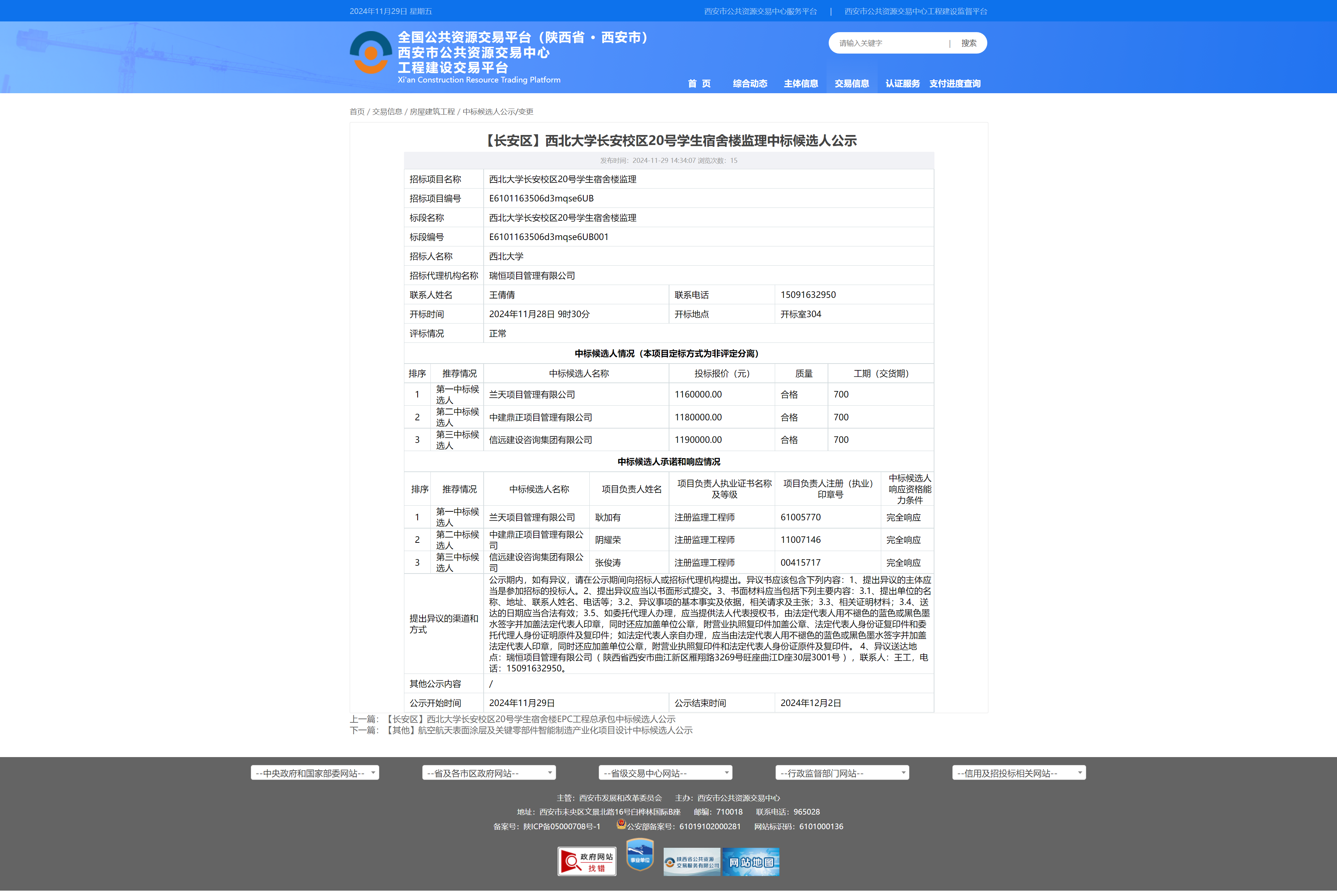 云博app官方在线入口长安校区20号学生宿舍楼监理中标候选人公示