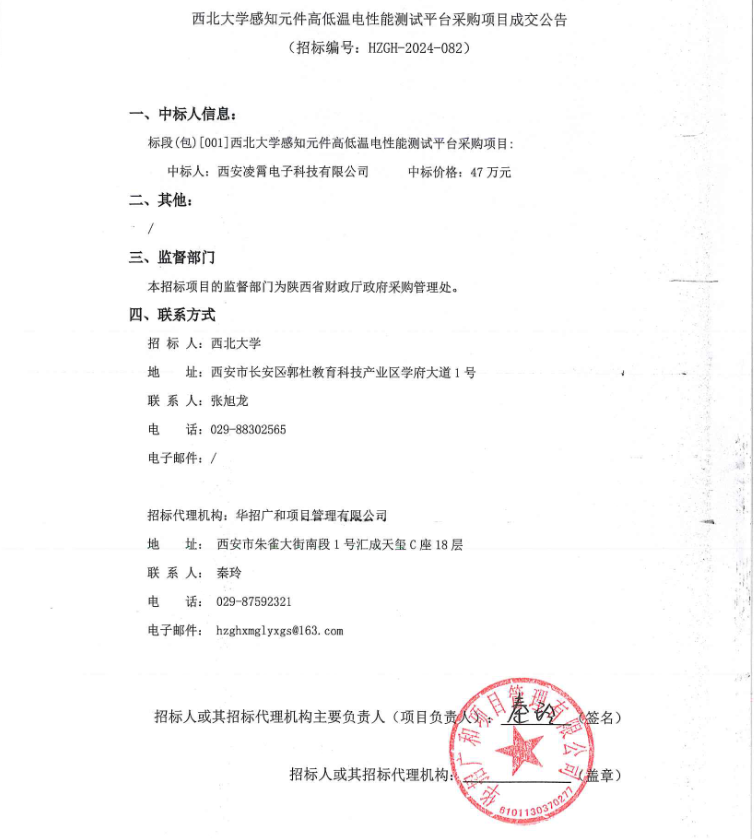 云博app官方在线入口感知元件高低温电性能测试平台采购项目成交公告