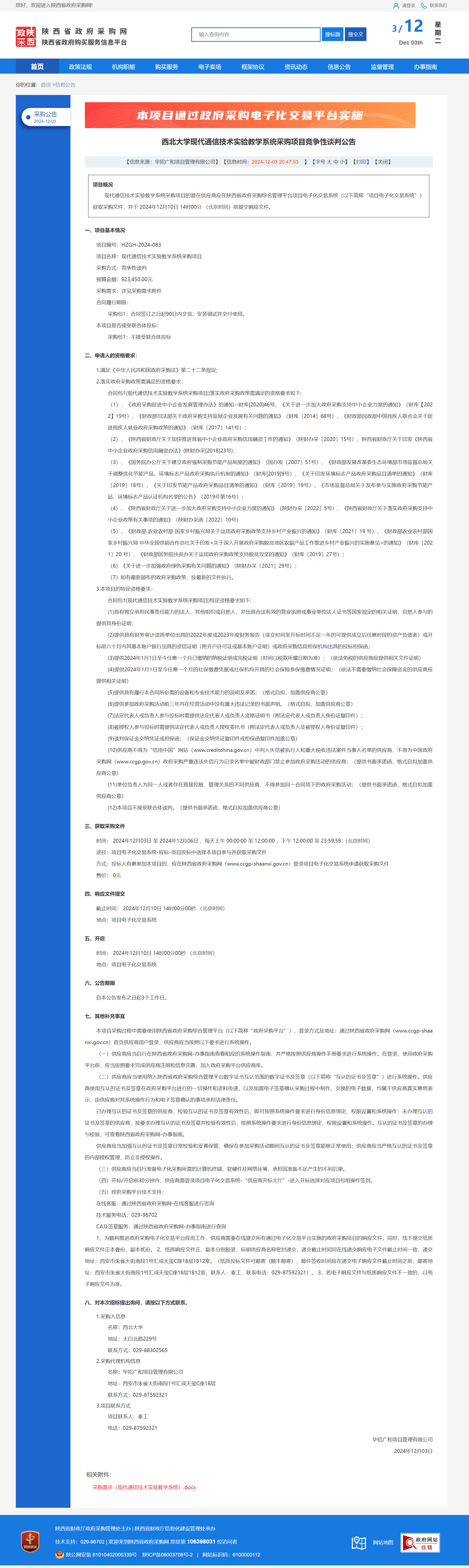 云博app官方在线入口现代通信技术实验教学系统采购项目竞争性谈判公告