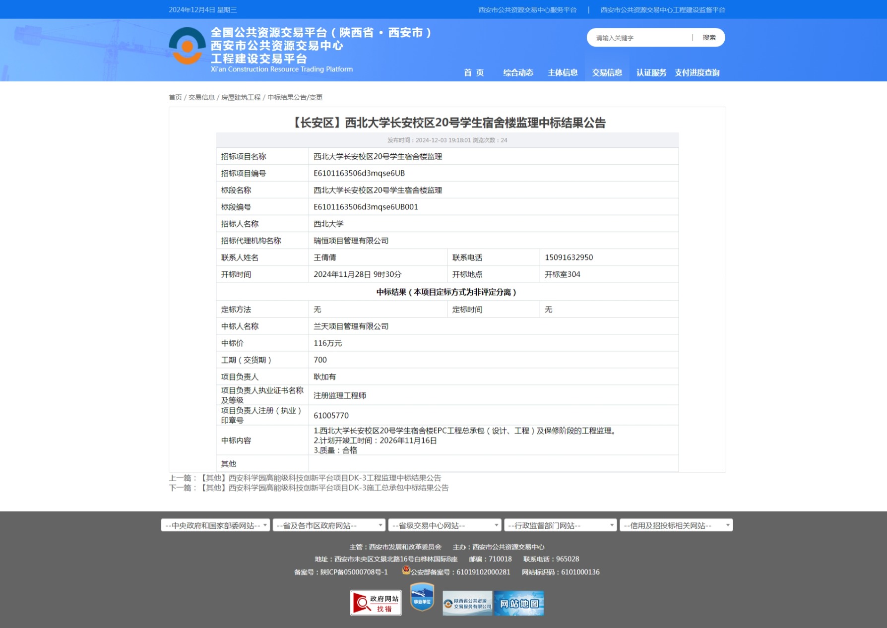 云博app官方在线入口长安校区20号学生宿舍楼监理中标结果公告