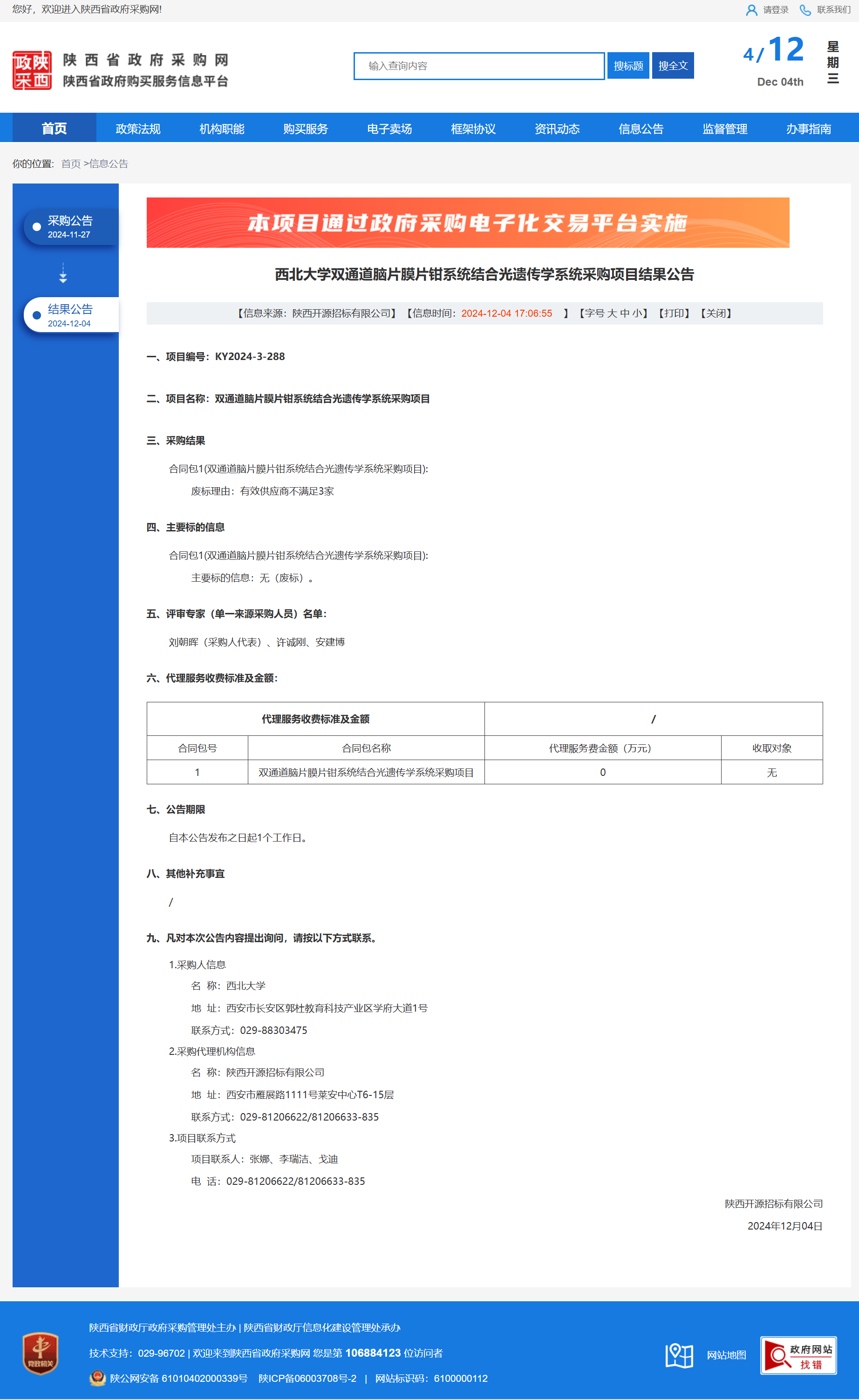 云博app官方在线入口双通道脑片膜片钳系统结合光遗传学系统采购项目结果公告 作者:采购与招标办公室 编辑: 时间:2024-12-04 原公告链接:https://www.ccgp-shaanxi.gov.cn/freecms/site/shaanxi/ggxx/info/2024/8a69c95d921859f0019390e7940533eb.html?noticeType=001006¬iceId=b68a3b19-b220-11ef-8063-08c0eb20c666