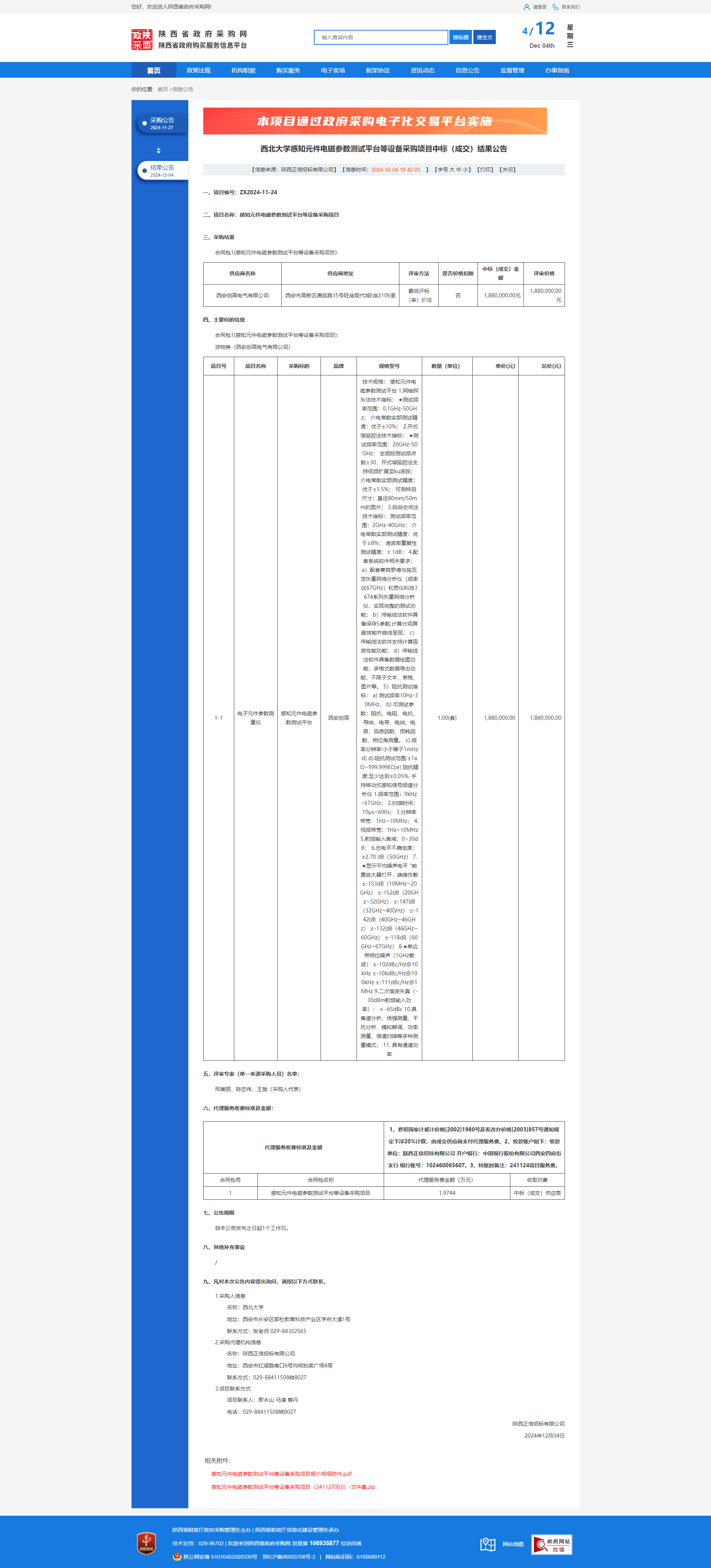 云博app官方在线入口感知元件电磁参数测试平台等设备采购项目中标(成交)结果公告