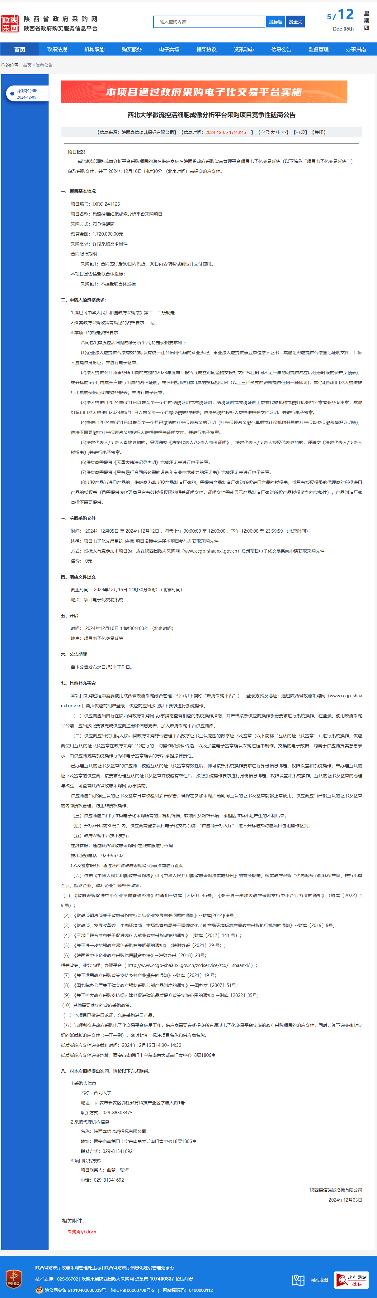 云博app官方在线入口微流控活细胞成像分析平台采购项目竞争性磋商公告 作者:采购与招标办公室 编辑: 时间:2024-12-05 原公告链接:https://www.ccgp-shaanxi.gov.cn/freecms/site/shaanxi/ggxx/info/2024/8a69c5a59218576d0193962b8b5f7d27.html?noticeType=001016¬iceId=ba5283be-b2ef-11ef-8063-08c0eb20c666