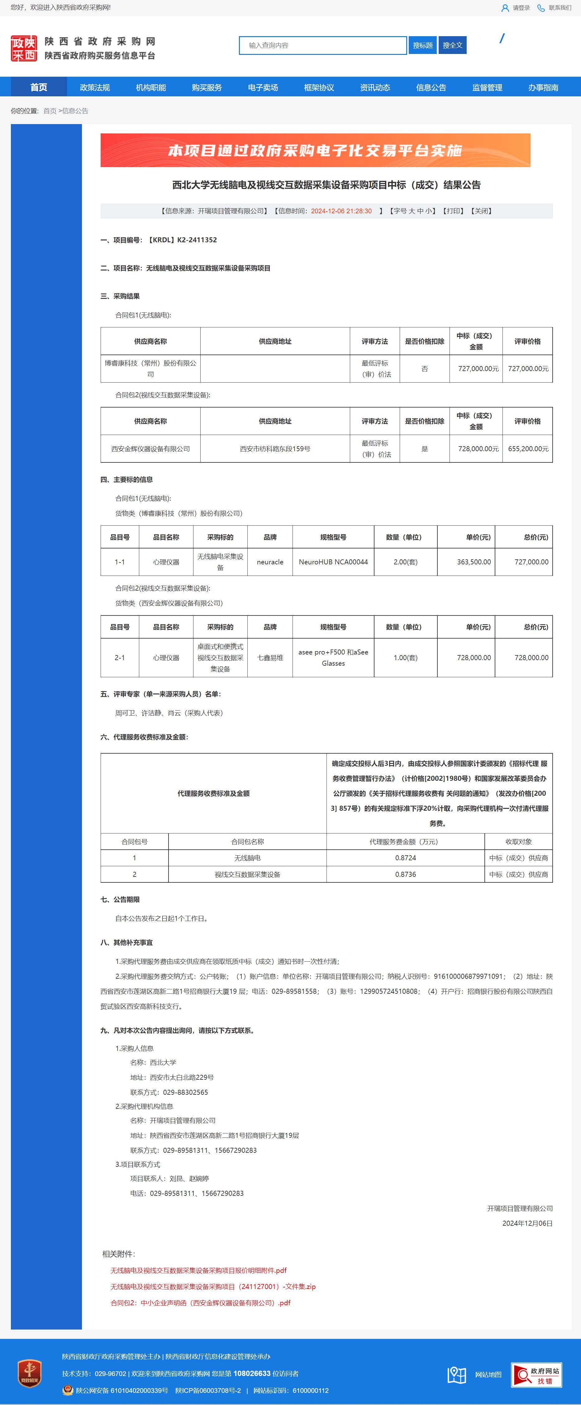 云博app官方在线入口无线脑电及视线交互数据采集设备采购项目中标(成交)结果公告