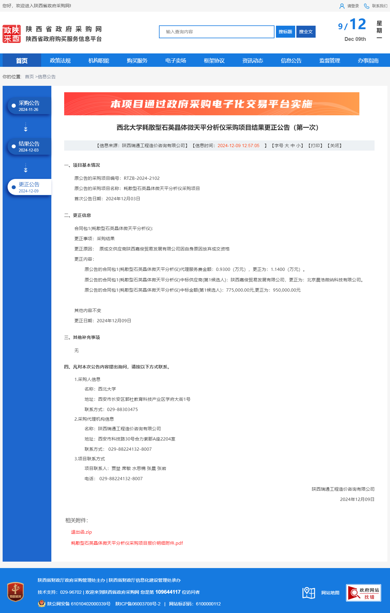 云博app官方在线入口耗散型石英晶体微天平分析仪采购项目结果更正公告(第一次) 作者:采购与招标办公室 编辑: 时间:2024-12-09 原公告链接:http://www.ccgp-shaanxi.gov.cn/freecms/site/shaanxi/ggxx/info/2024/8a69c251921857370193a9a220bd255f.html?noticeType=001032¬iceId=a663ae52-b5eb-11ef-8063-08c0eb20c666