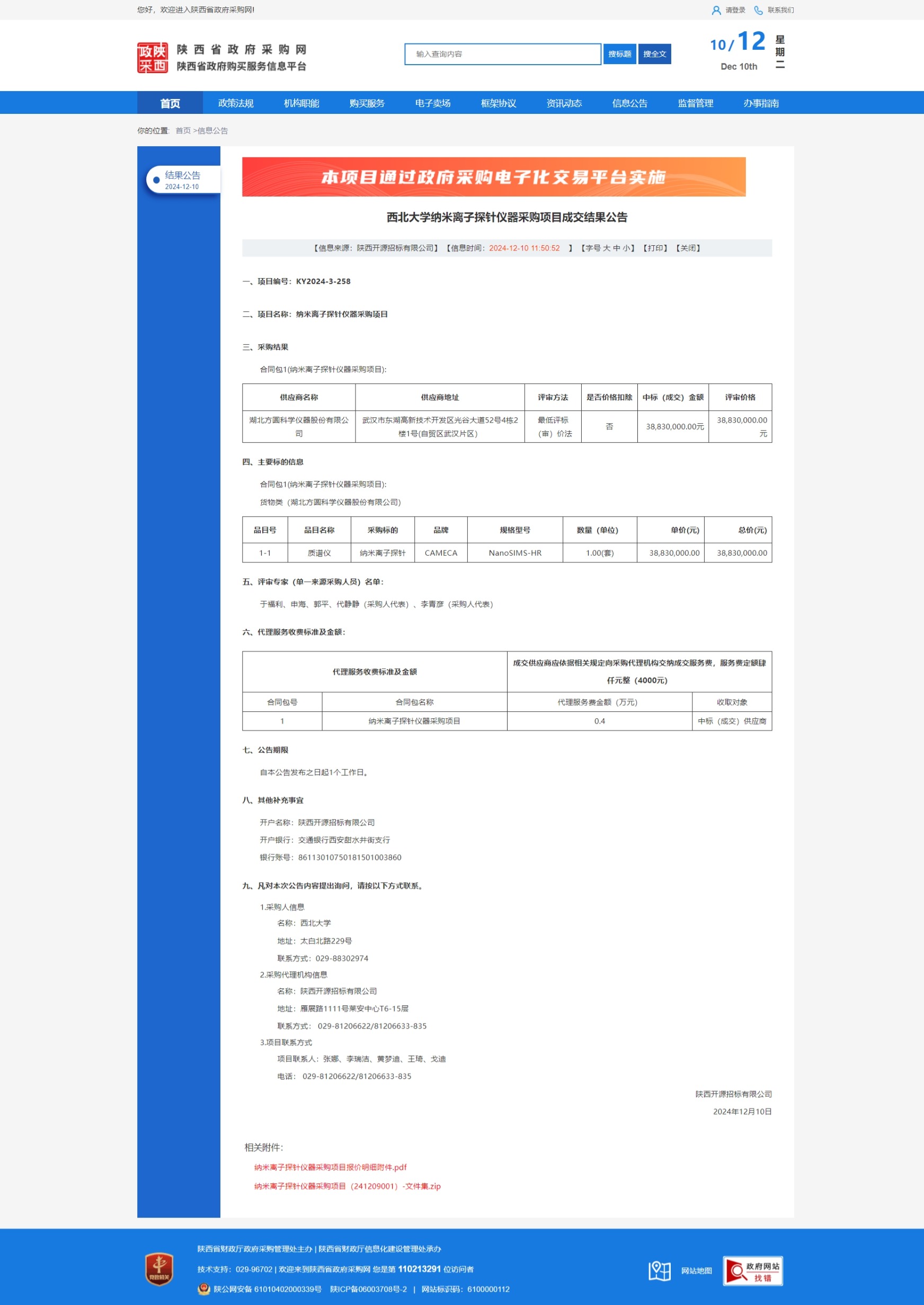云博app官方在线入口纳米离子探针仪器采购项目成交结果公告 作者: 编辑:薛利娟 时间:2024-12-10 原公告链接:https://www.ccgp-shaanxi.gov.cn/freecms/site/shaanxi/ggxx/info/2024/8a69c5a59218576d0193aea3717402eb.html?noticeType=001025¬iceId=917c05e9-b6ab-11ef-8063-08c0eb20c666