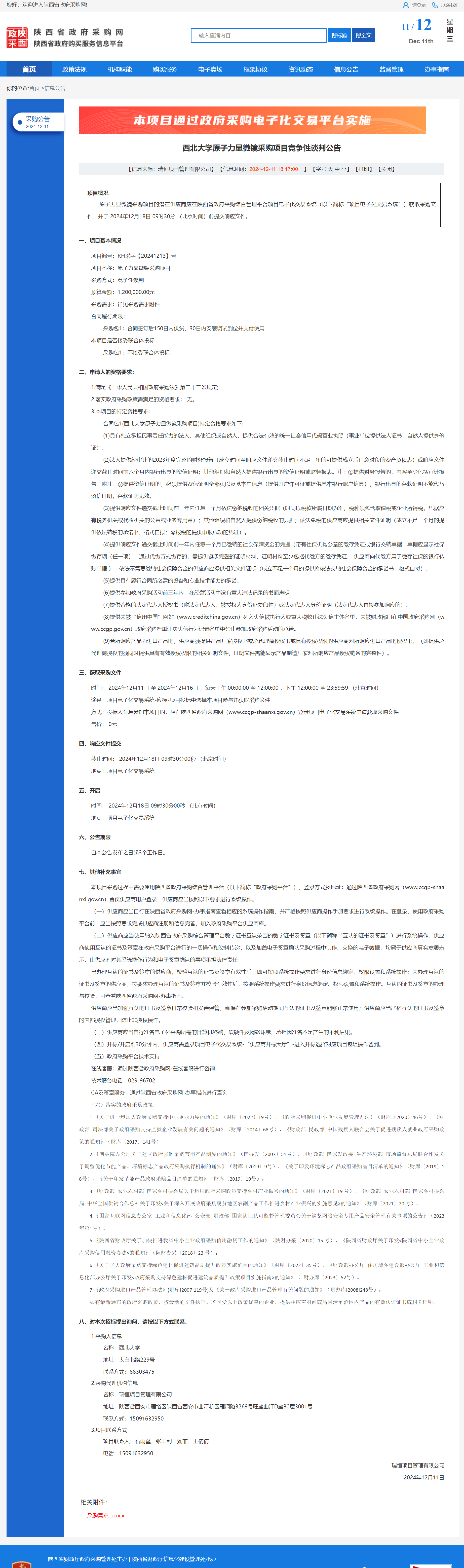 云博app官方在线入口原子力显微镜采购项目竞争性谈判公告 作者:采购与招标办公室 编辑: 时间:2024-12-11 原公告链接:http://www.ccgp-shaanxi.gov.cn/freecms/site/shaanxi/ggxx/info/2024/8a69c251921857370193b52d521644e4.html?noticeType=001013¬iceId=ad5ee099-b7aa-11ef-8063-08c0eb20c666