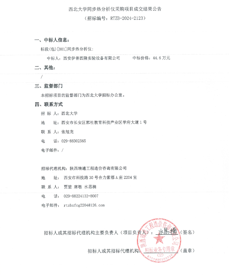 云博app官方在线入口同步热分析仪采购项目成交结果公告