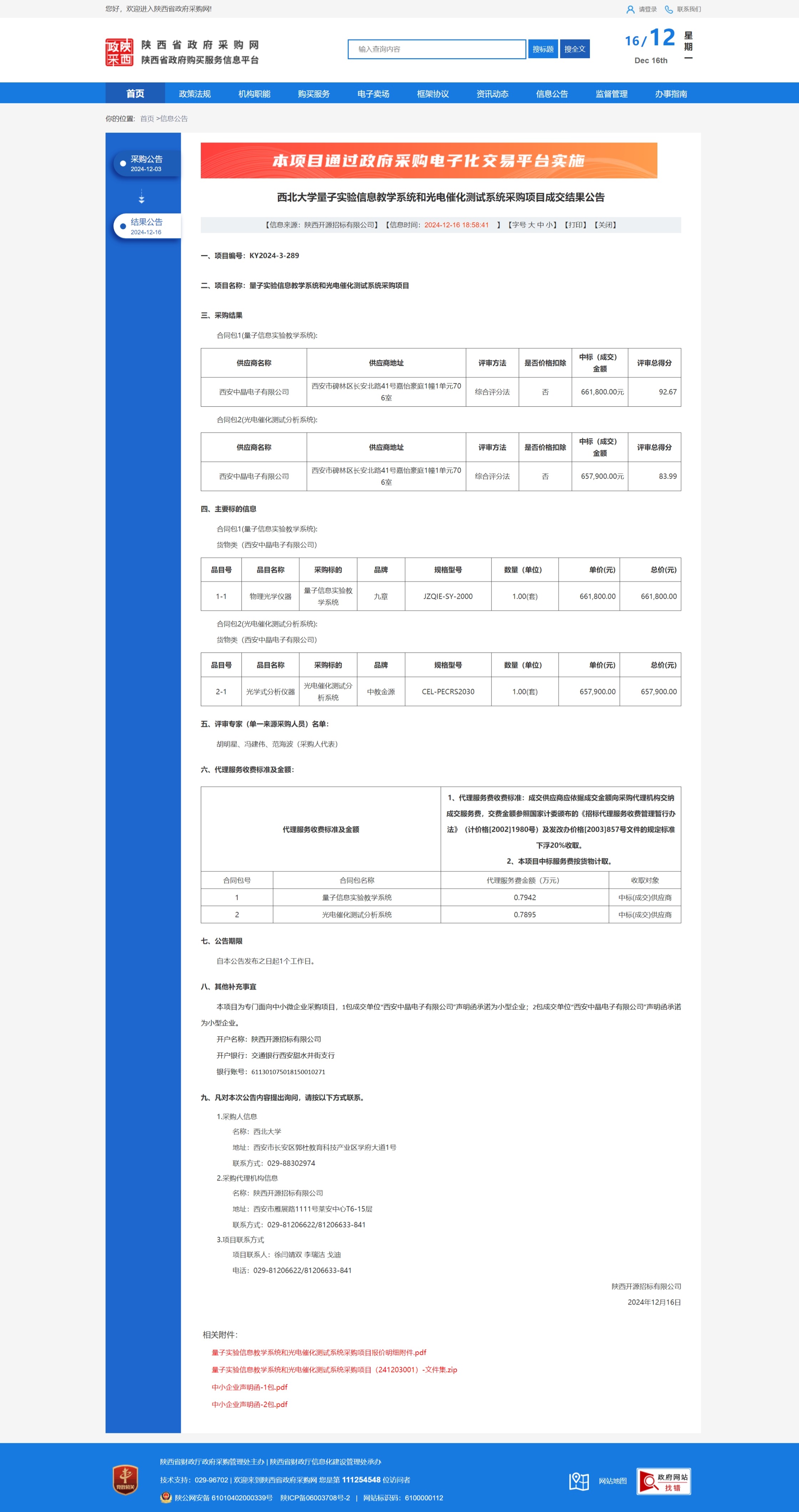 云博app官方在线入口量子实验信息教学系统和光电催化测试系统采购项目成交结果公告