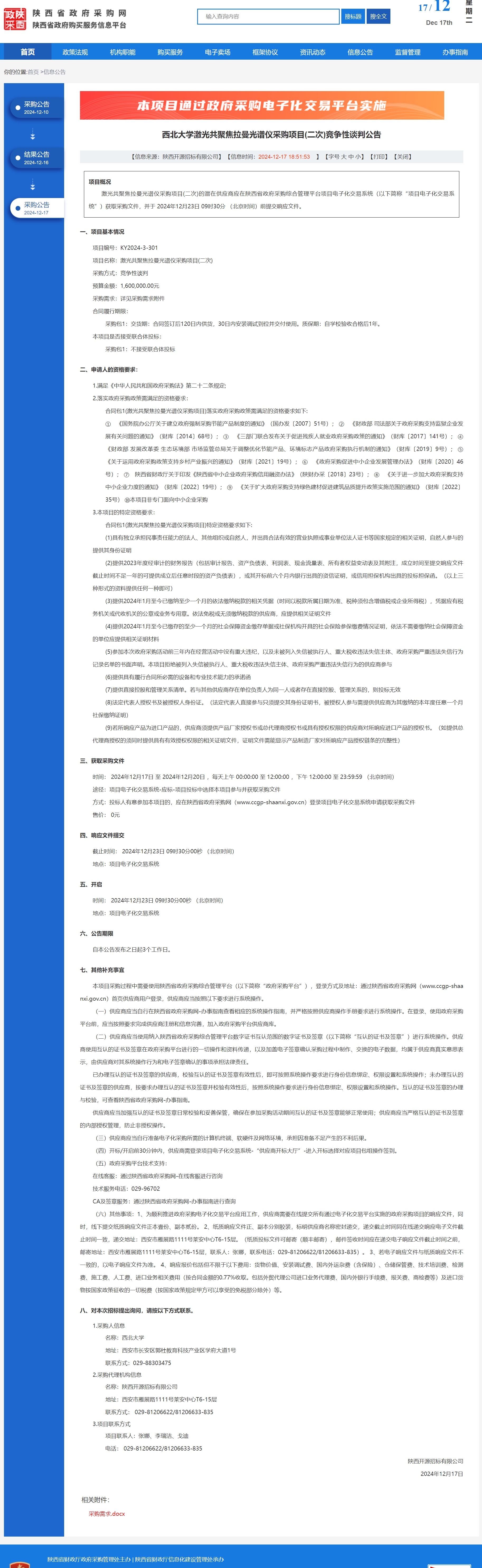 云博app官方在线入口激光共聚焦拉曼光谱仪采购项目(二次)竞争性谈判公告 作者:采购与招标办公室 编辑: 时间:2024-12-17 原公告链接:https://www.ccgp-shaanxi.gov.cn/freecms/site/shaanxi/ggxx/info/2024/8a69c44e9218572b0193d434f6c730a9.html?noticeType=001013¬iceId=8ed4237e-bc66-11ef-8063-08c0eb20c666