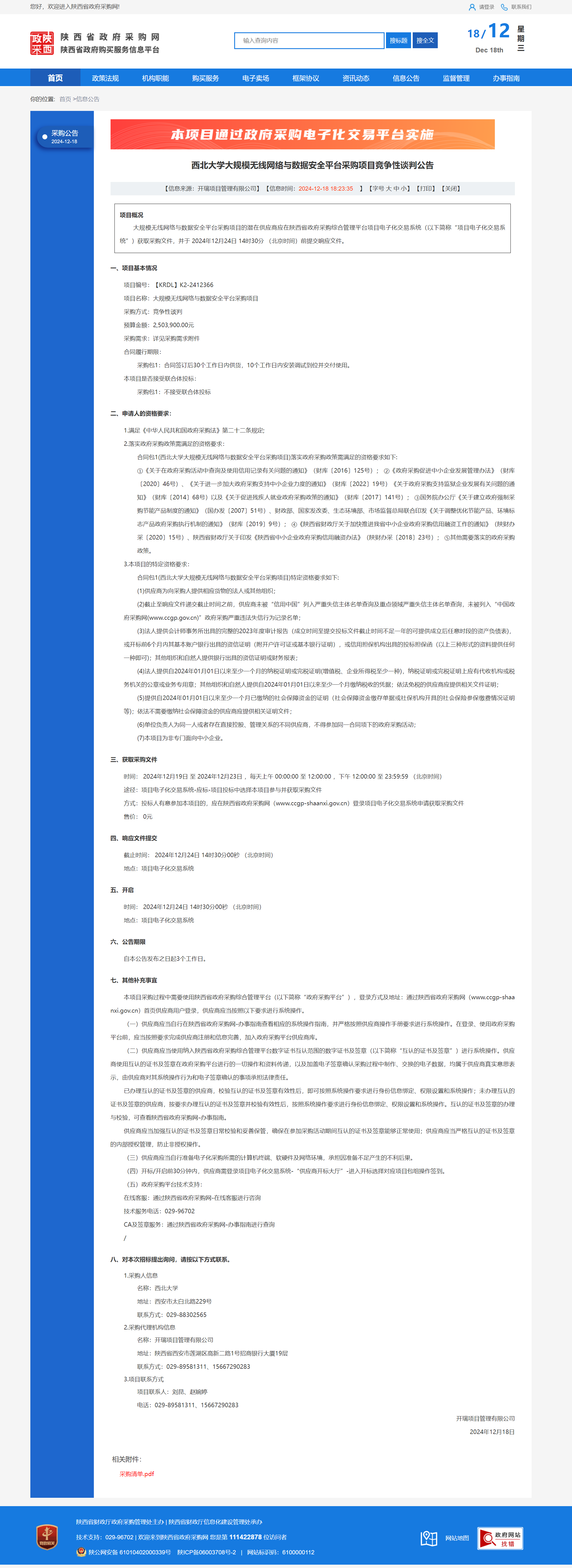 云博app官方在线入口大规模无线网络与数据安全平台采购项目竞争性谈判公告