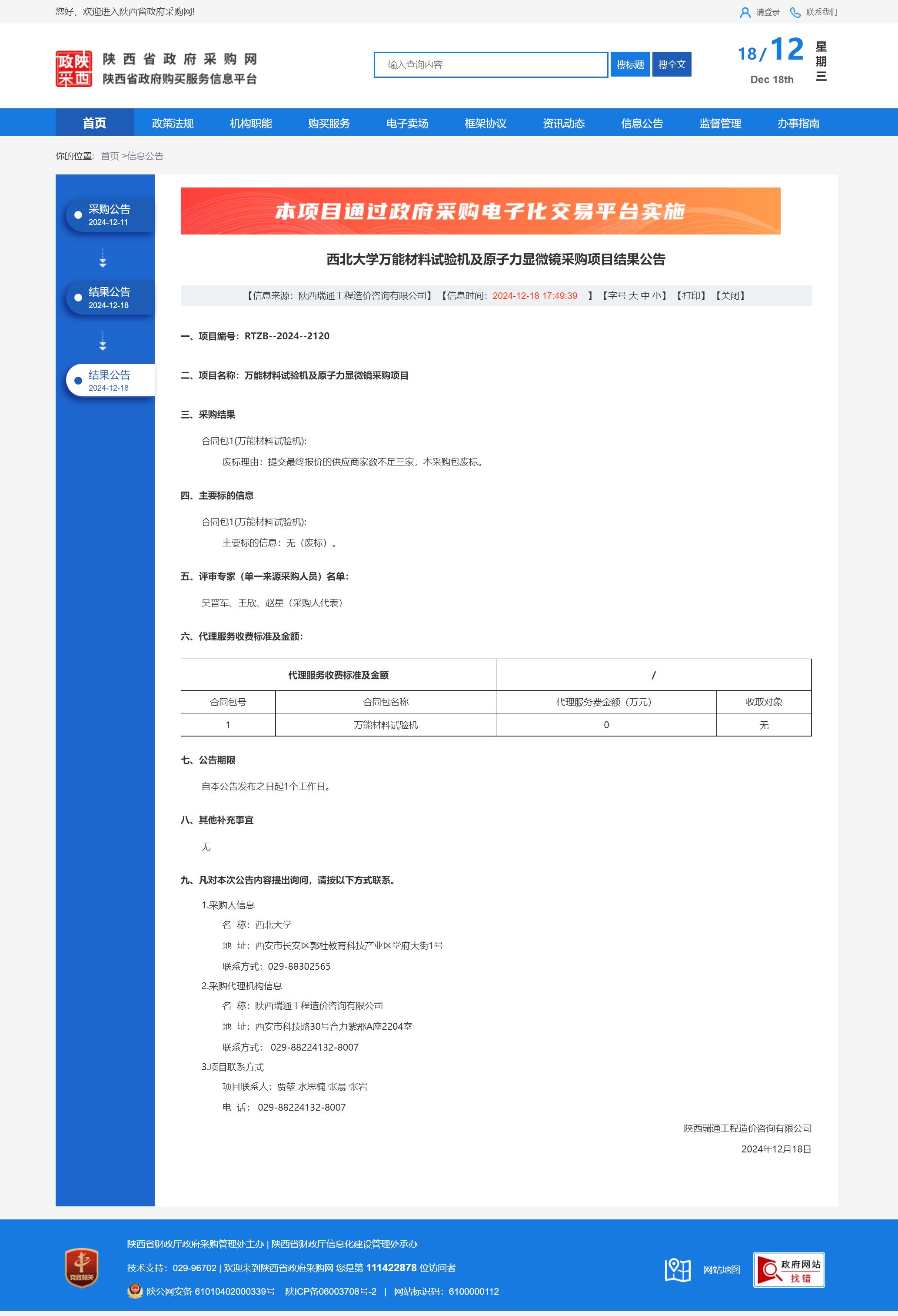 云博app官方在线入口万能材料试验机及原子力显微镜采购项目结果公告