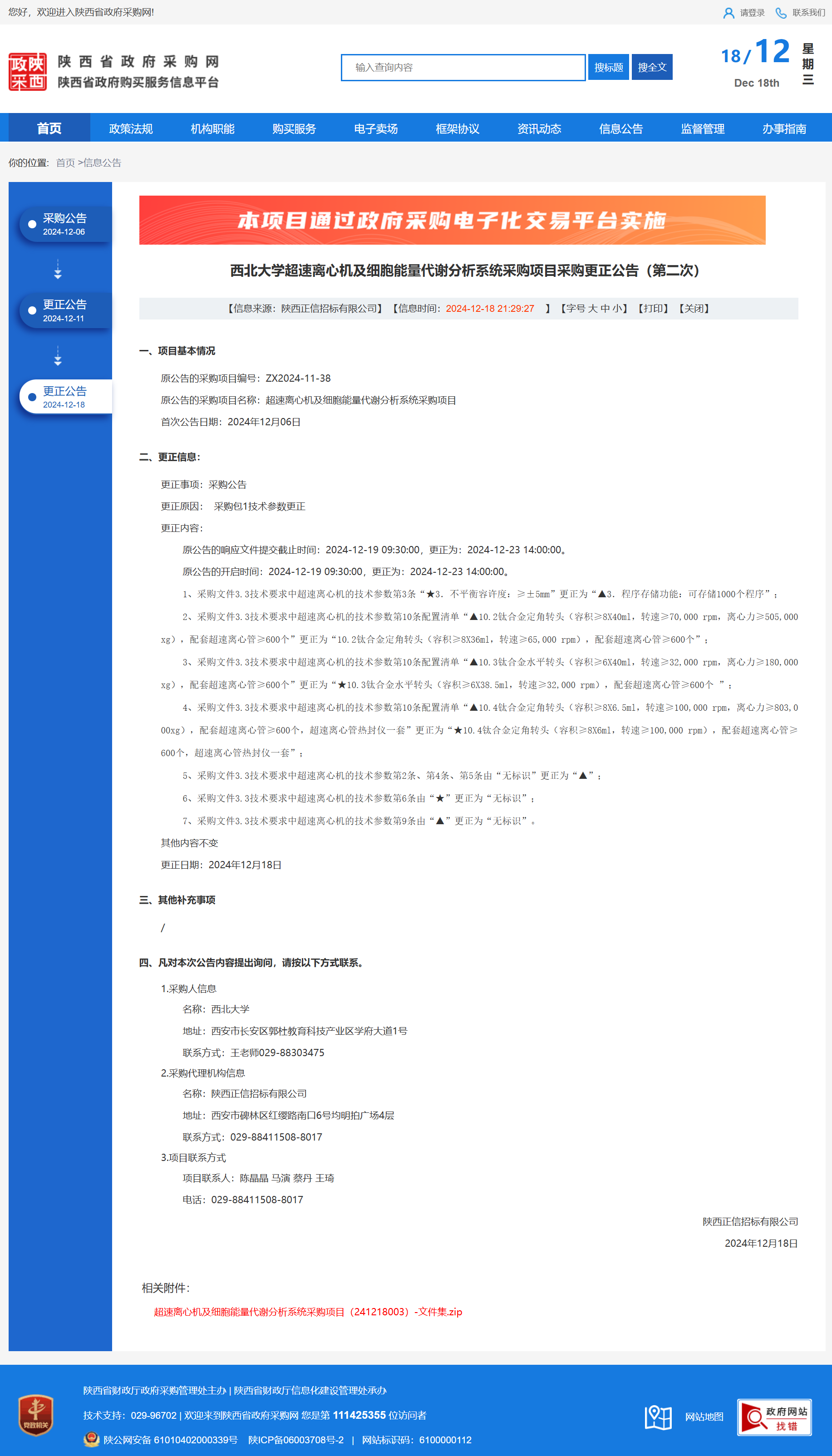云博app官方在线入口超速离心机及细胞能量代谢分析系统采购项目采购更正公告(第二次) 作者:采购与招标办公室 编辑: 时间:2024-12-18 原公告链接:https://www.ccgp-shaanxi.gov.cn/freecms/site/shaanxi/ggxx/info/2024/8a69c5a59218576d01939bb6350f3f92.html?noticeType=001016¬iceId=5be8bcca-b3ca-11ef-8063-08c0eb20c666