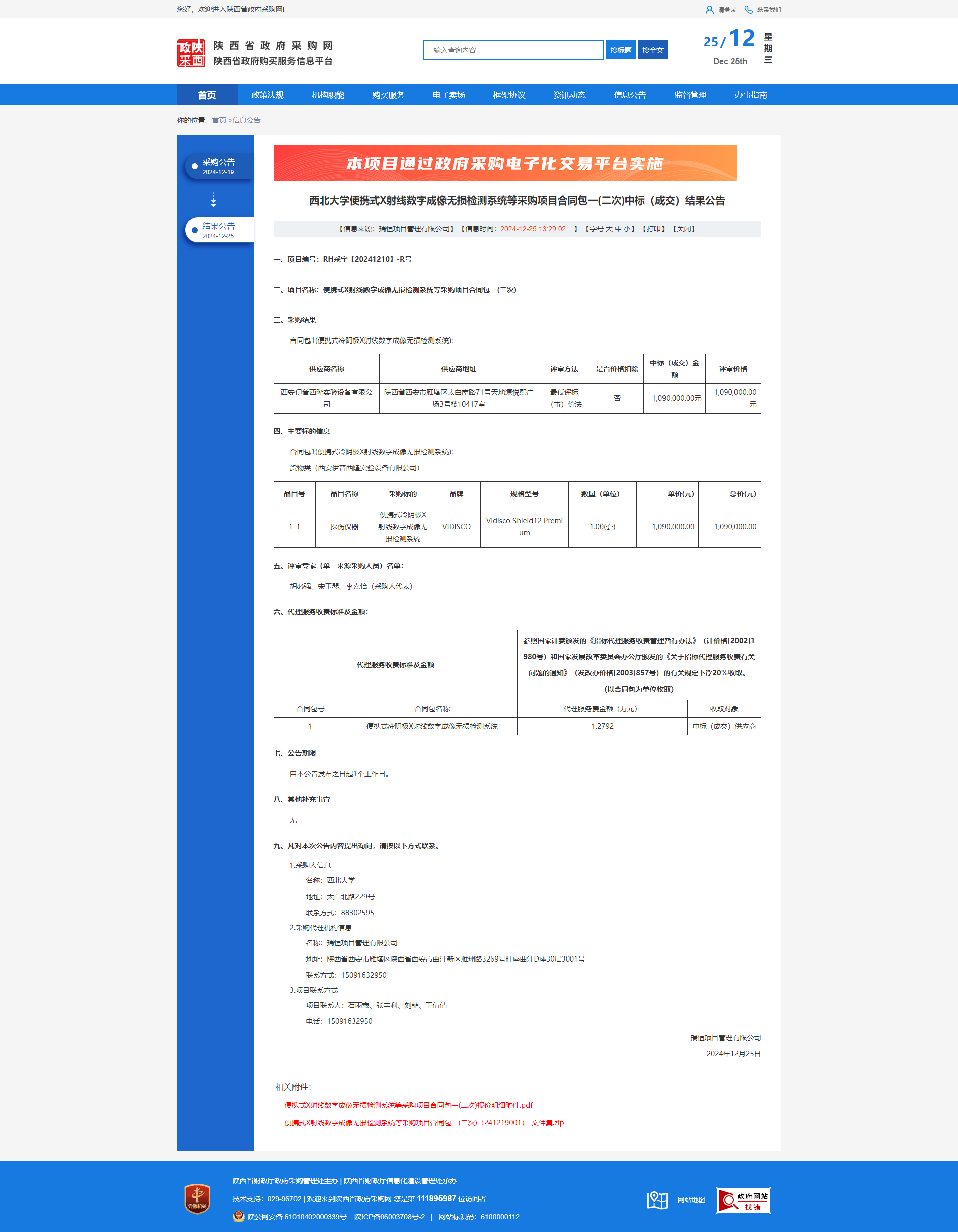云博app官方在线入口便携式X射线数字成像无损检测系统等采购项目合同包一(二次)中标(成交)结果公告