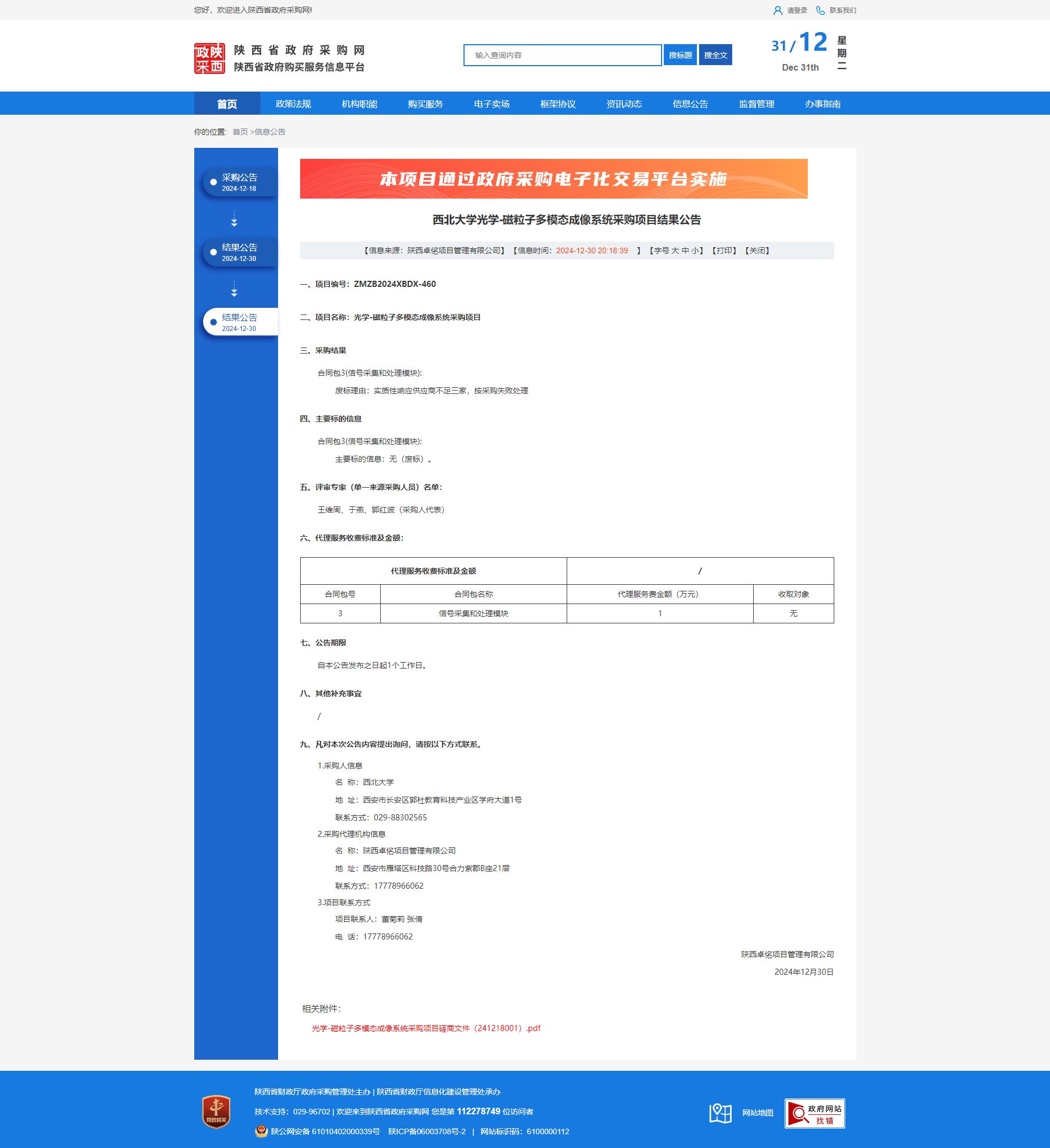 云博app官方在线入口光学-磁粒子多模态成像系统采购项目中标(成交)结果公告
