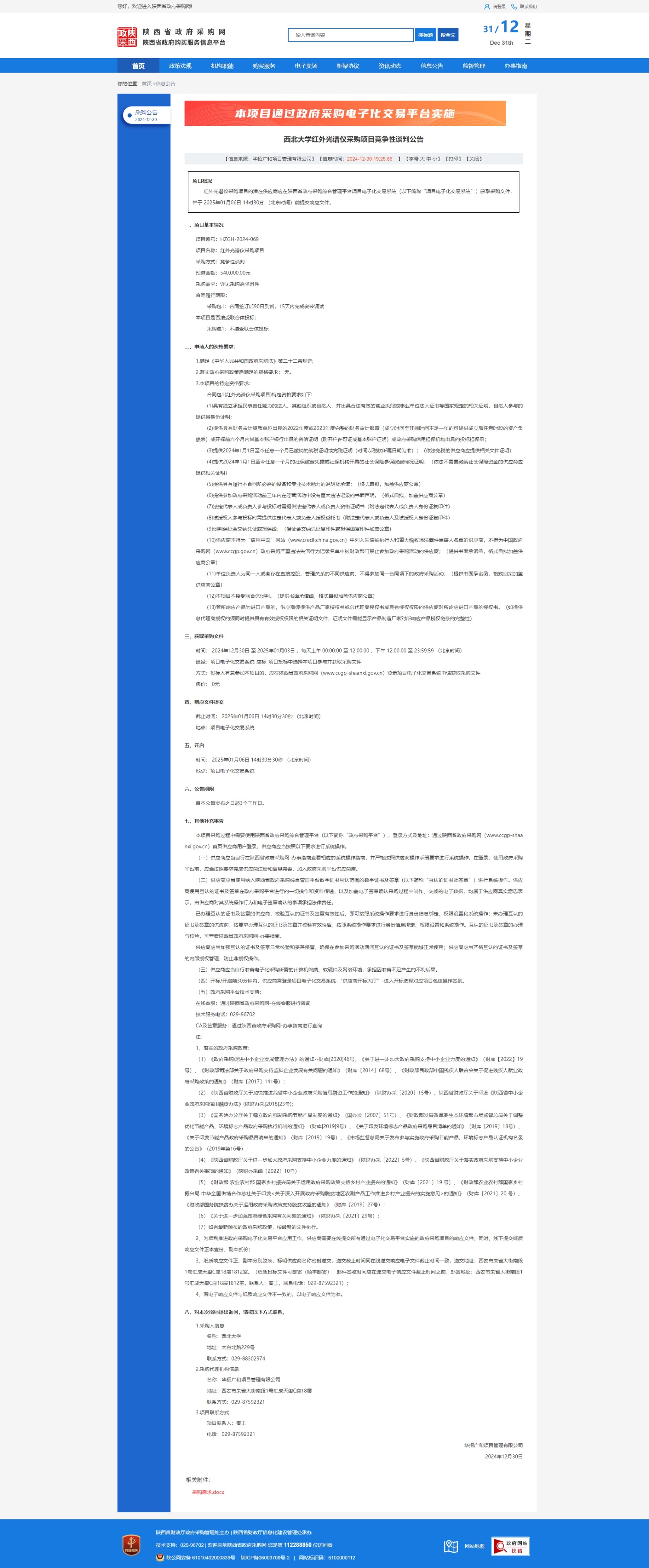 云博app官方在线入口红外光谱仪采购项目竞争性谈判公告 作者: 编辑:薛利娟 时间:2024-12-31 原公告链接:https://www.ccgp-shaanxi.gov.cn/freecms/site/shaanxi/ggxx/info/2024/8a69c251921857370194174168cb49b9.html?noticeType=001013¬iceId=7e09294d-c6a2-11ef-8063-08c0eb20c666